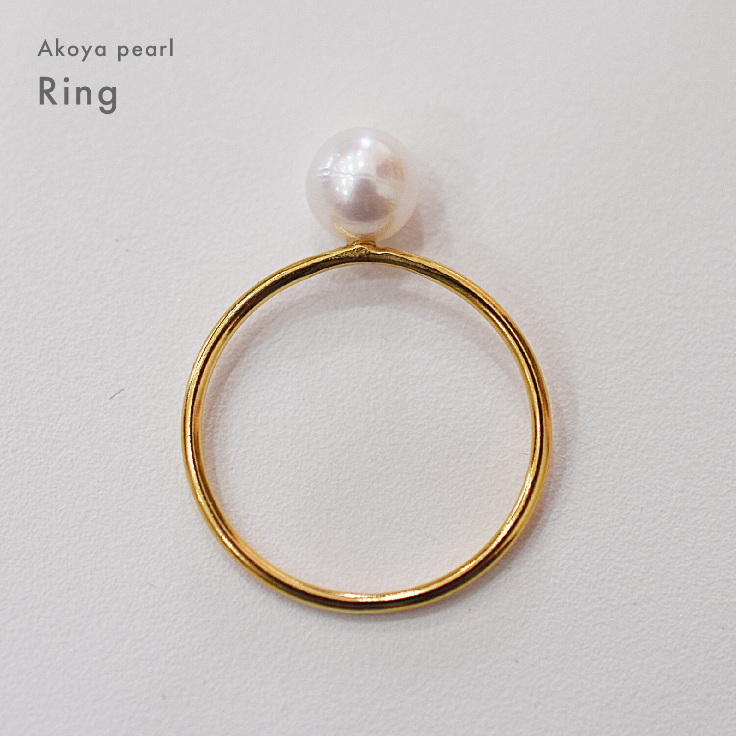 5.5mm - 6mm ホワイトピンク 1粒 9号 リング 14KGF ゴールドフィルド あこや真珠