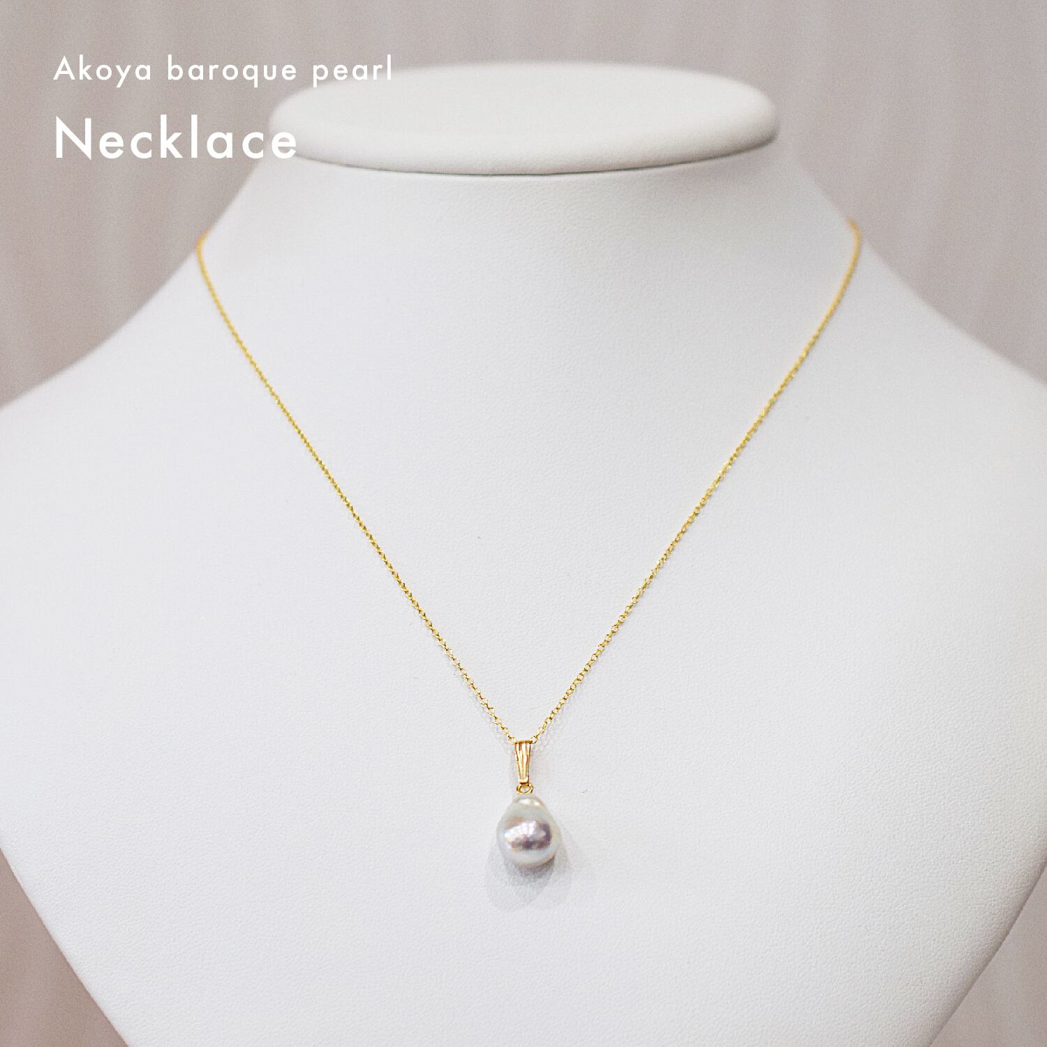 ナチュラルカラーの真珠が美しい1粒あこや真珠バロックパールネックレスです。カジュアルな装いにも合わせやすいシンプルなデザイン。