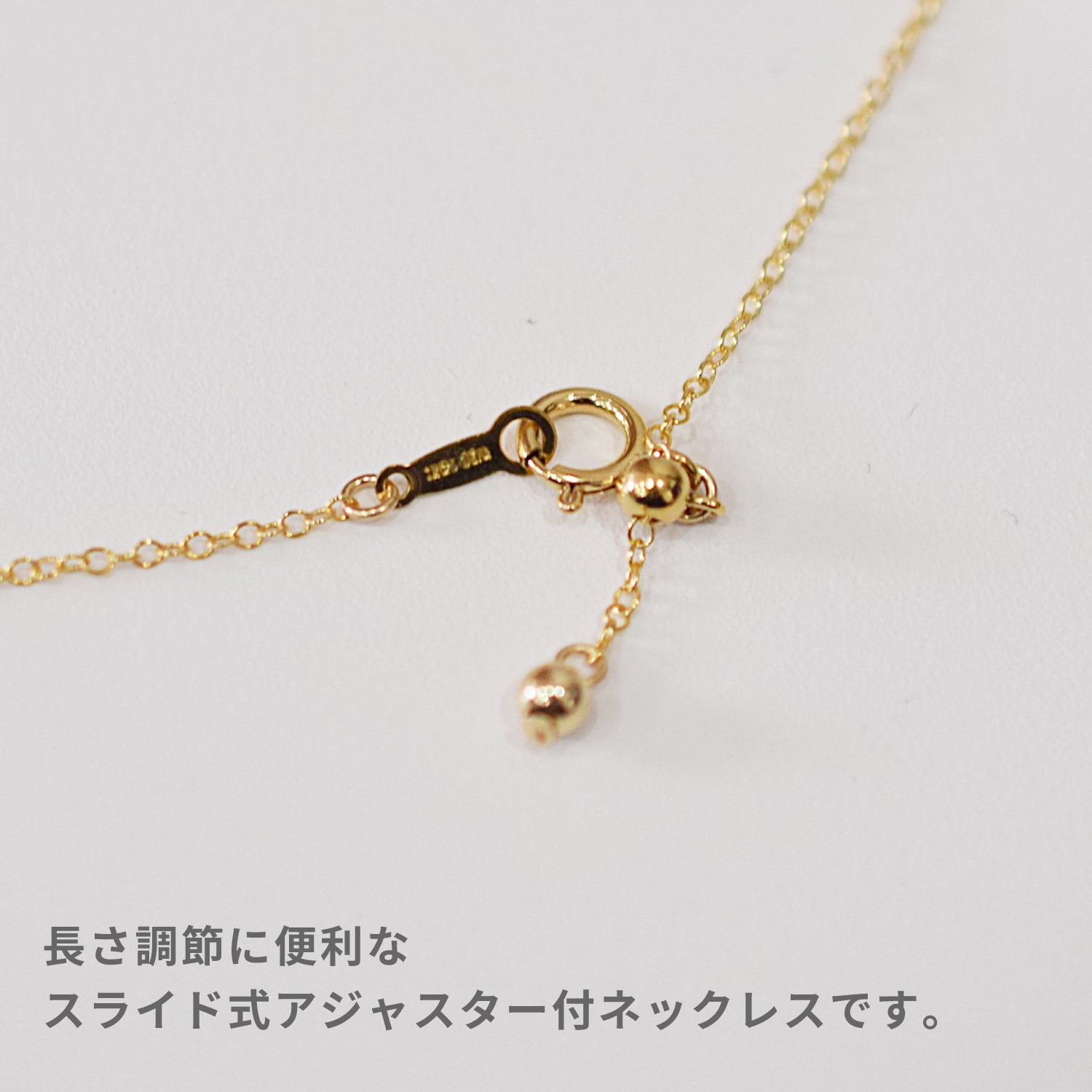 ネックレスチェーンはスライドアジャスター付きなので、長さを自分好みで調節できるのも嬉しいネックレスです。