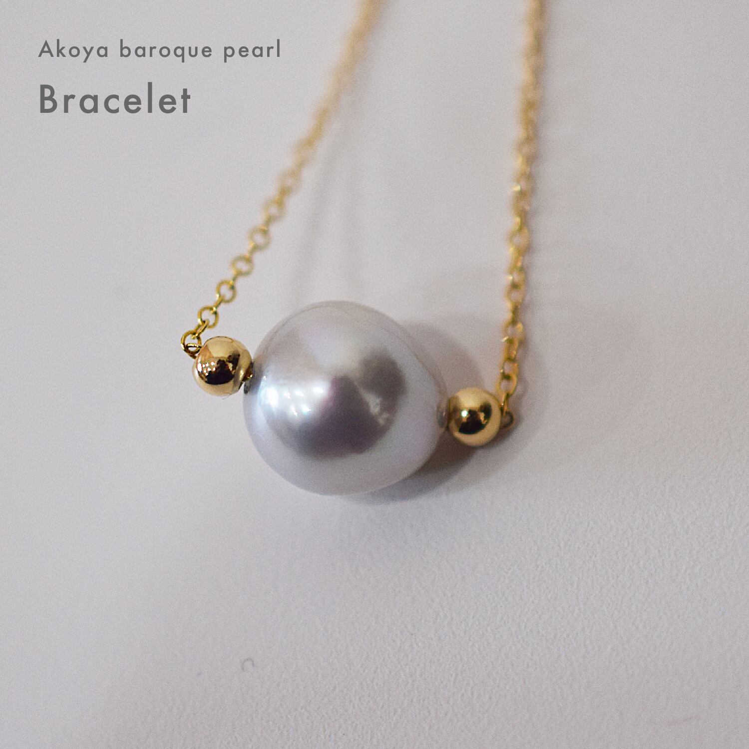 【在庫処分特別セール価格!】 [pg074] 10mm 大珠 バロックパール ブレスレット 1粒 ナチュラル 14KGF ゴールドフィルド あこや真珠 本真珠 珍珠