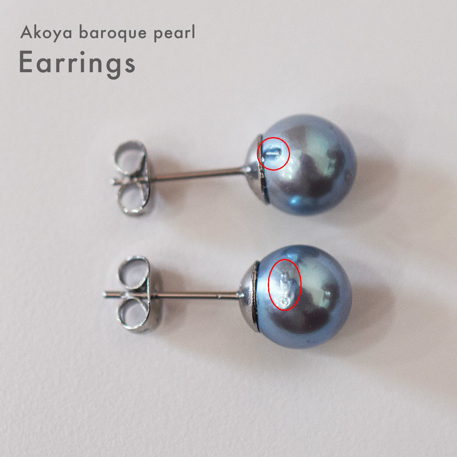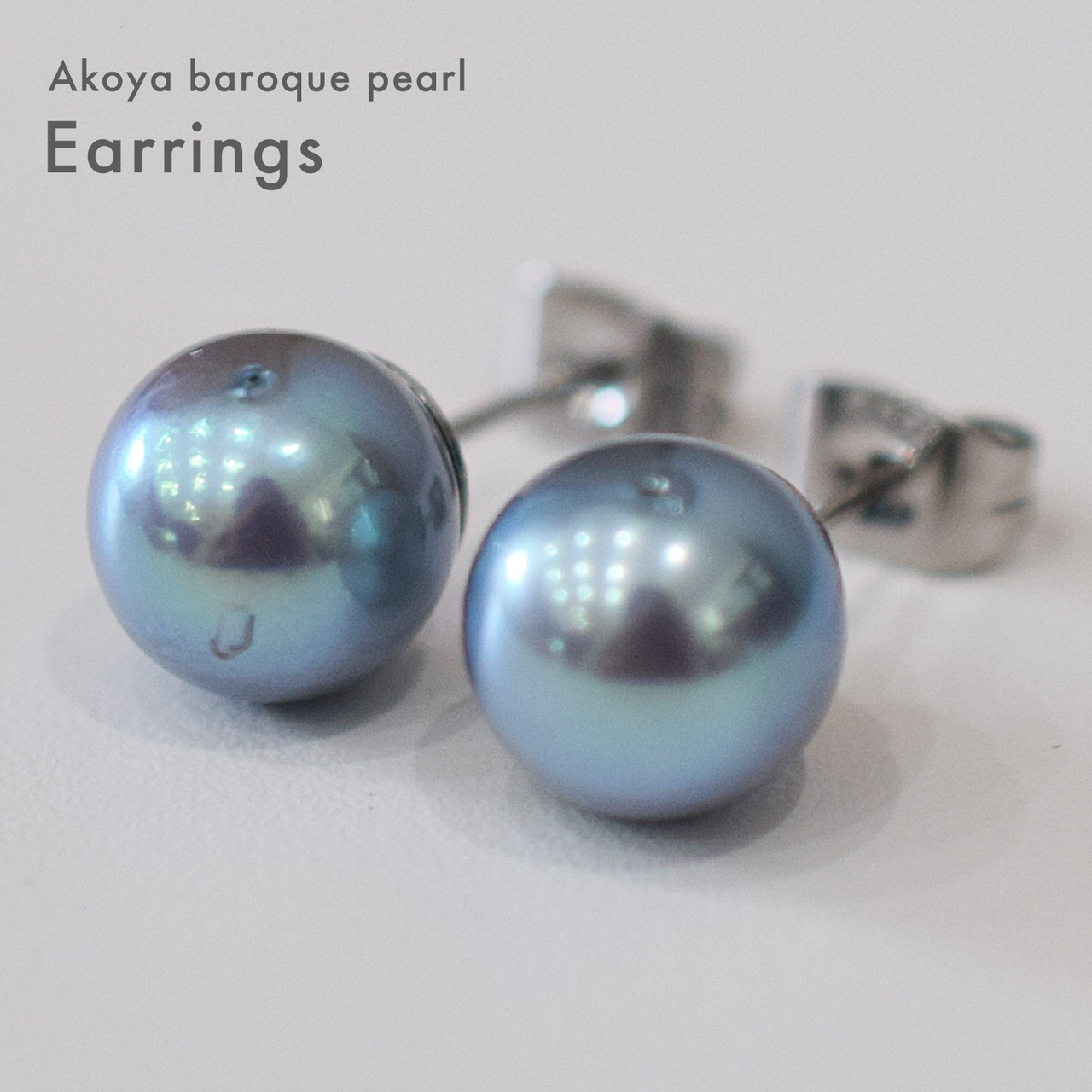 8.5mm - 9mm コバルトブルー 染色 セミラウンド バロック あこや真珠 ピアス