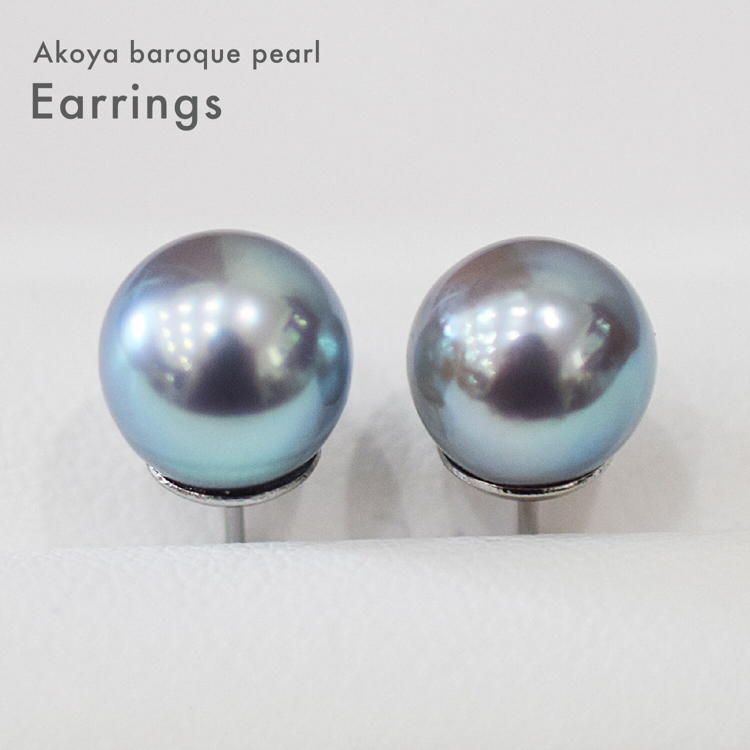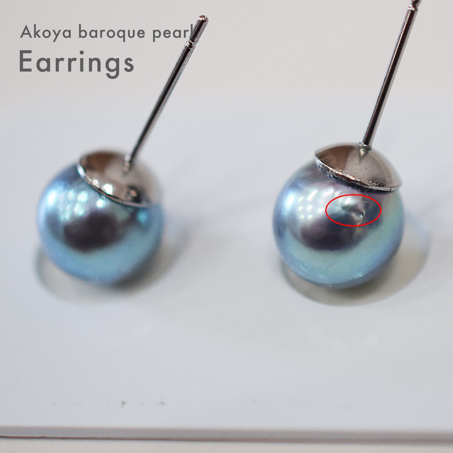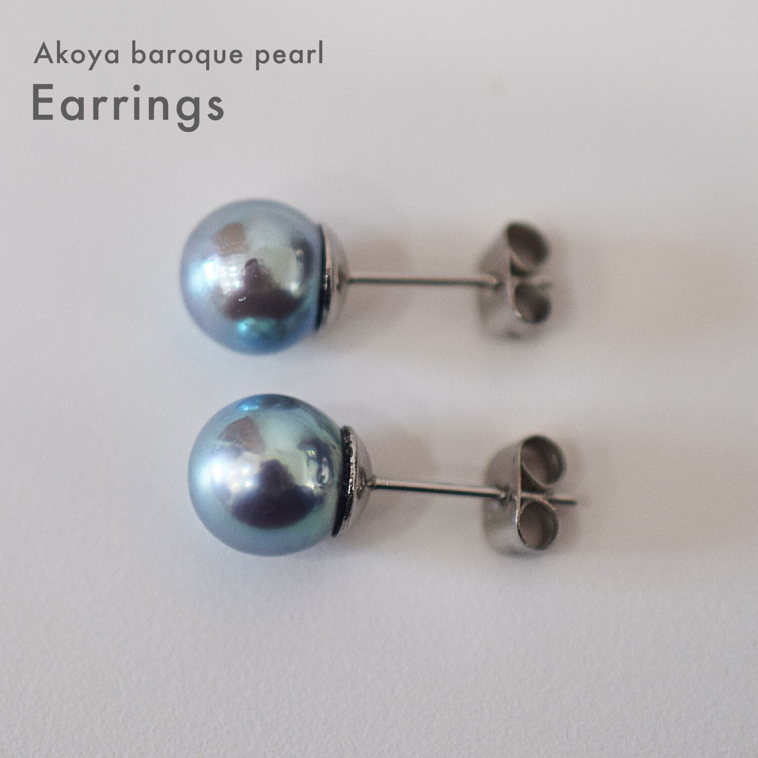 8.5mm - 9mm コバルトブルー 染色 セミラウンド バロック あこや真珠 ピアス