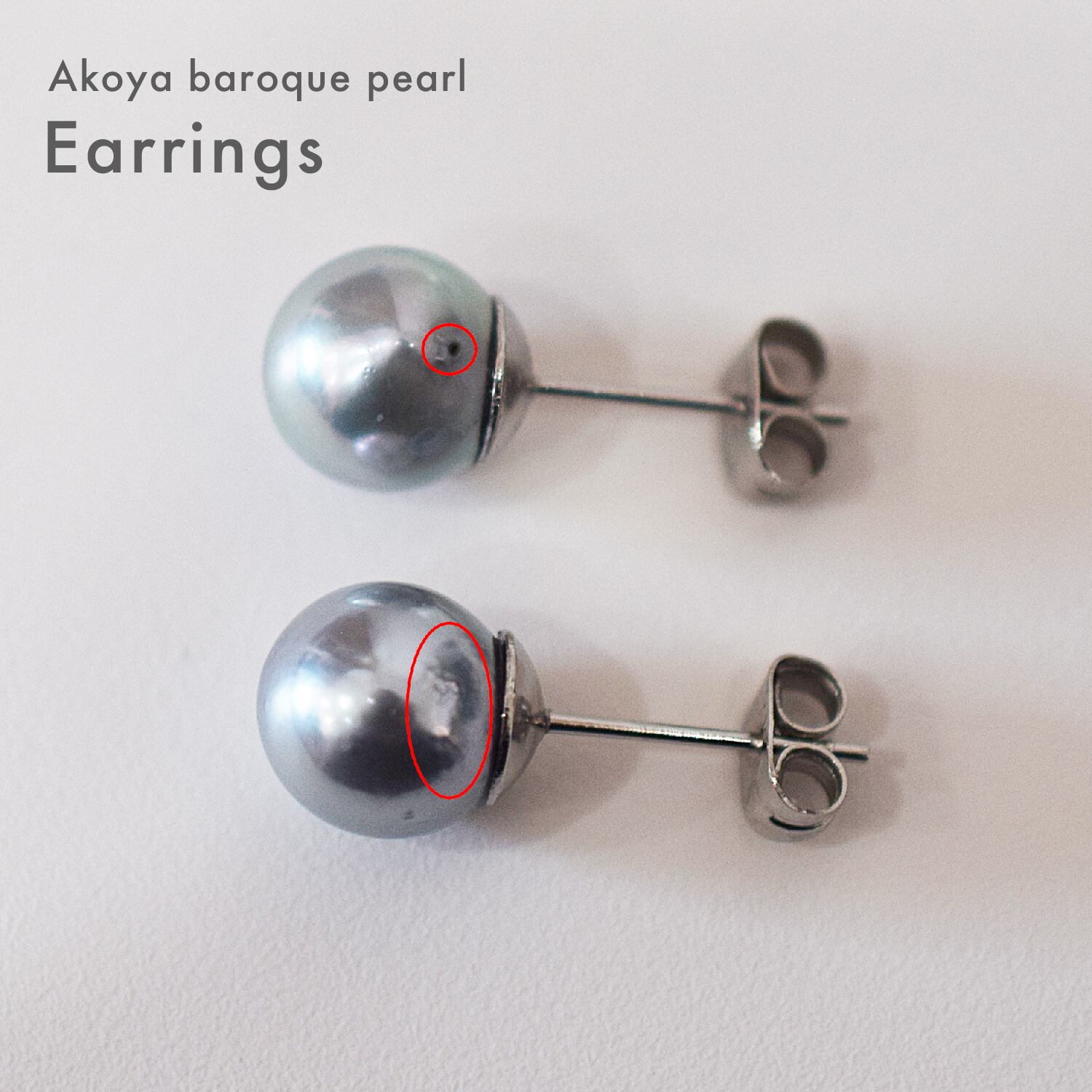 8mm - 8.5mm コバルトグレー 染色 セミラウンド バロック あこや真珠 ピアス