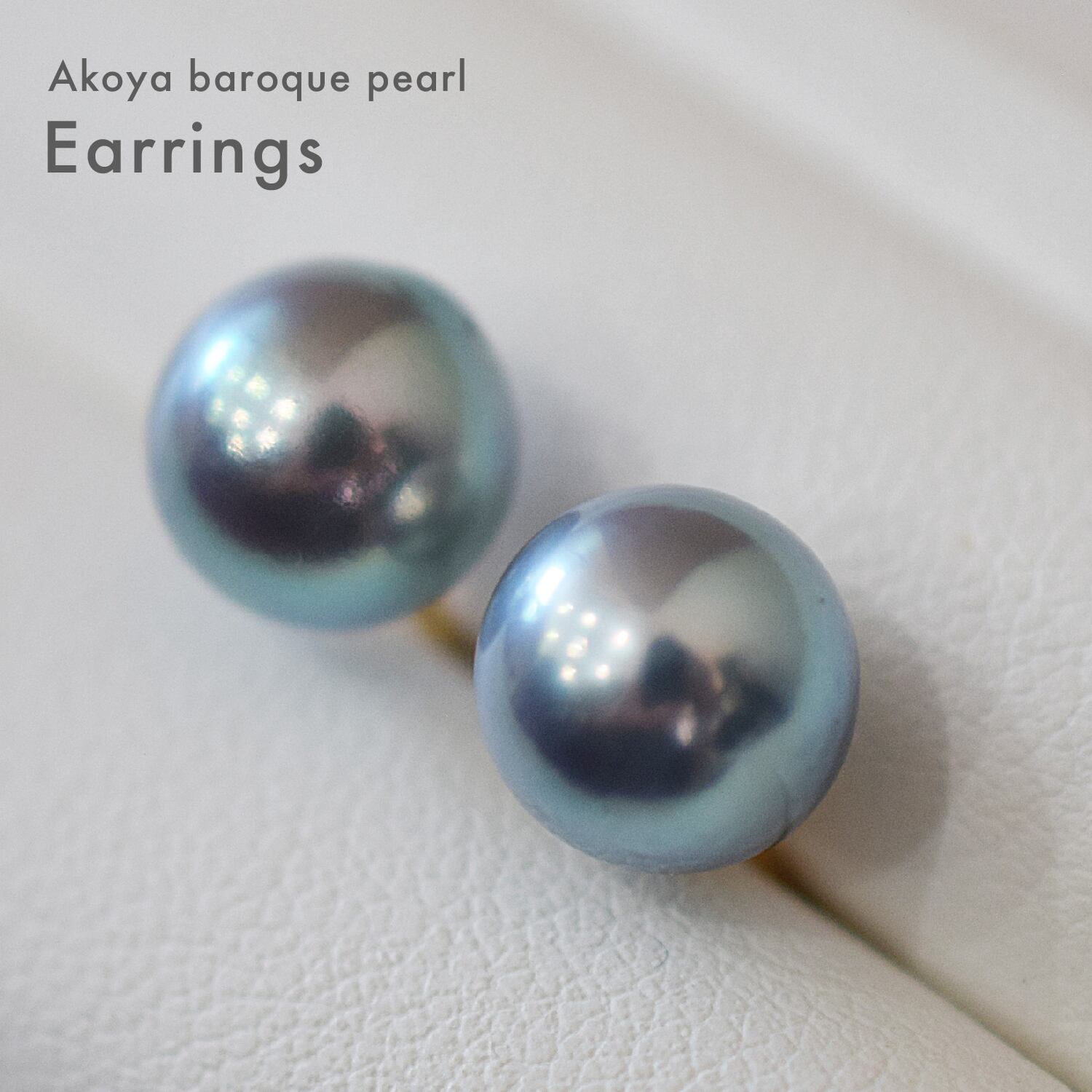 【在庫処分特別セール価格!】 [pg078_1]8mm - 8.5mm コバルトブルー 染色 セミラウンド バロック 14KGF ゴールドフィルド あこや真珠 ピアス 完成品