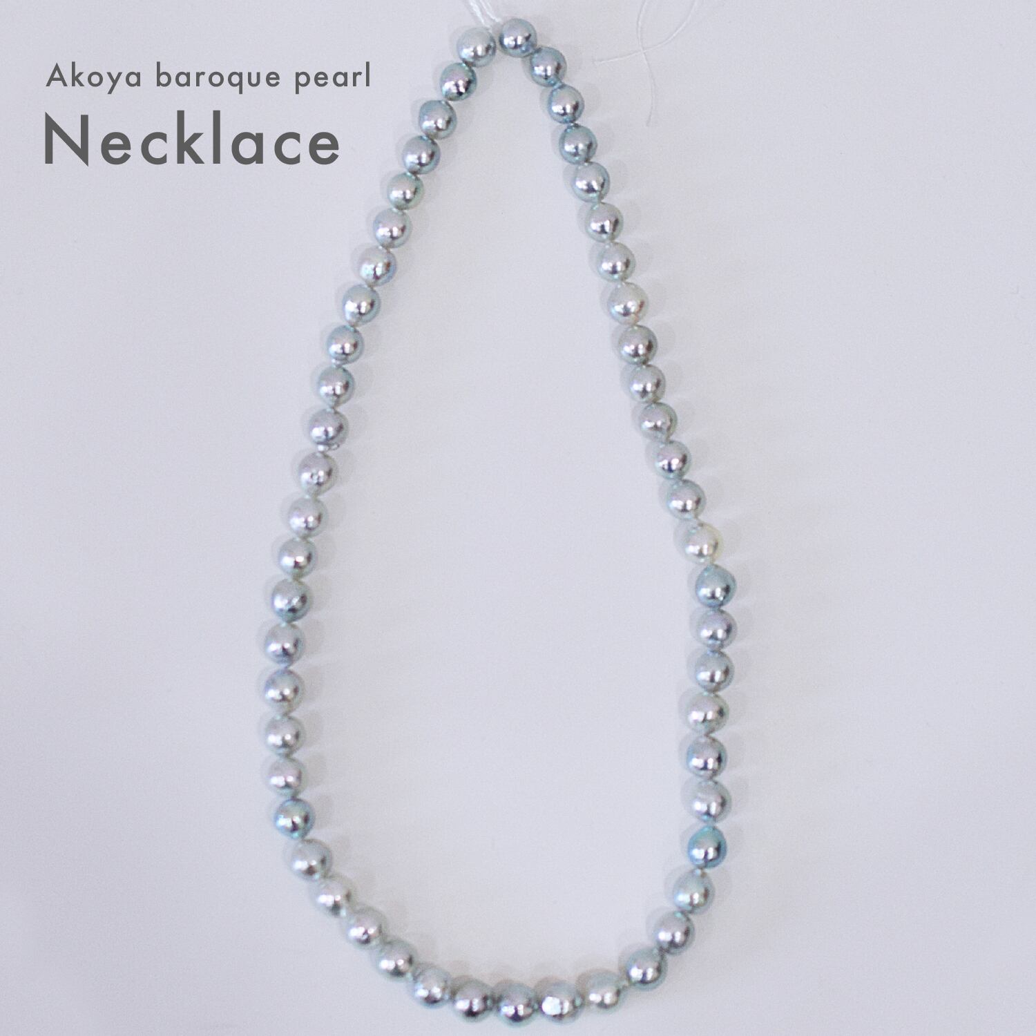 ナチュラルカラーのあこや真珠バロックパールネックレスです。パーティーファッションのアクセントなどにおすすめのネックレスです。上品なナチュラルカラーのパールがパッと目をひきます。