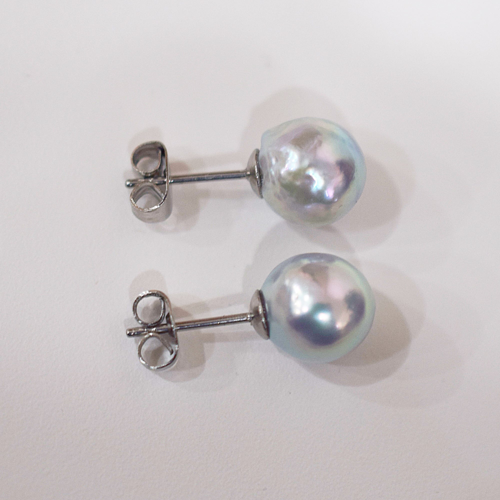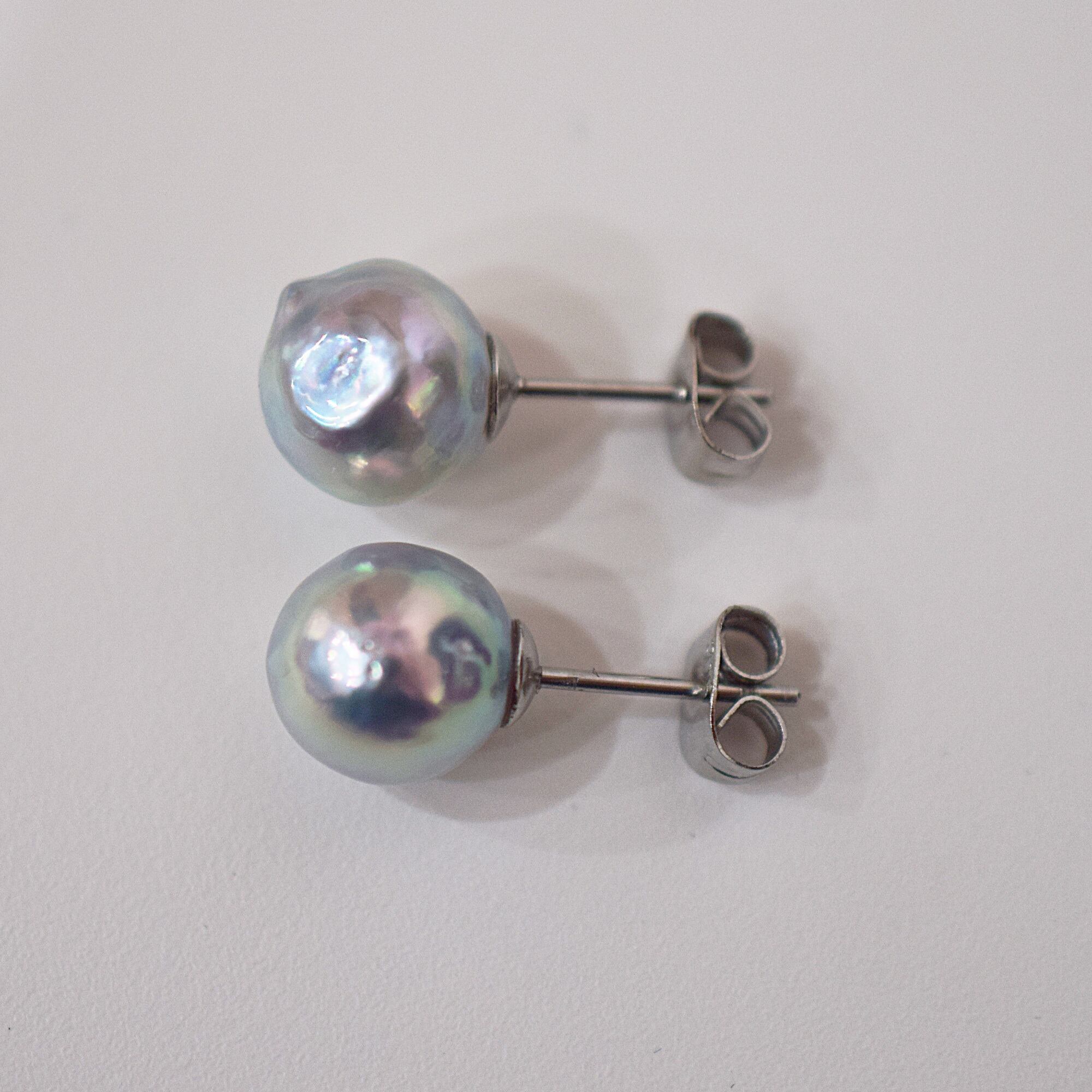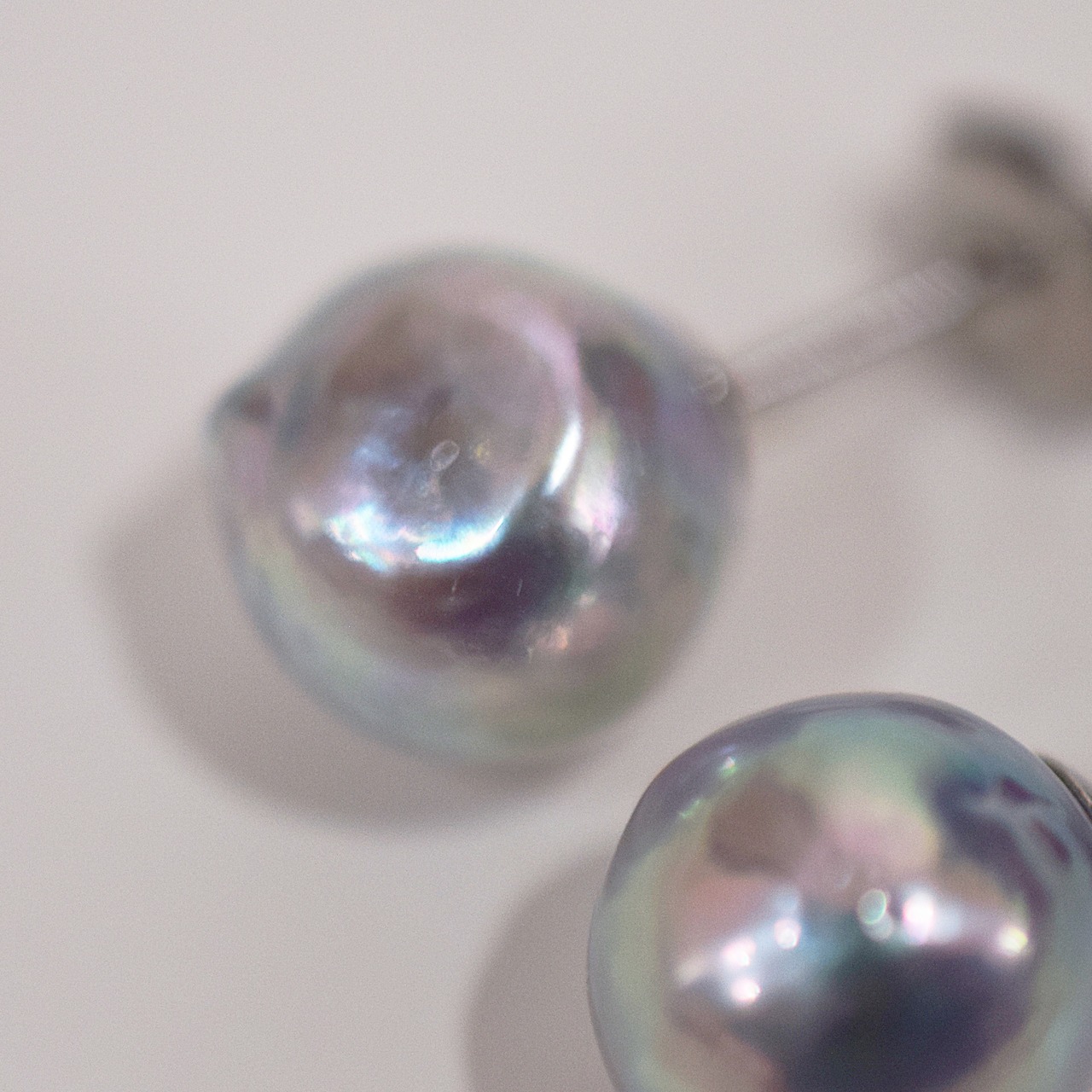 ころんとしたフォルムが可愛いあこや真珠のバロックパールのスタッドピアスです。