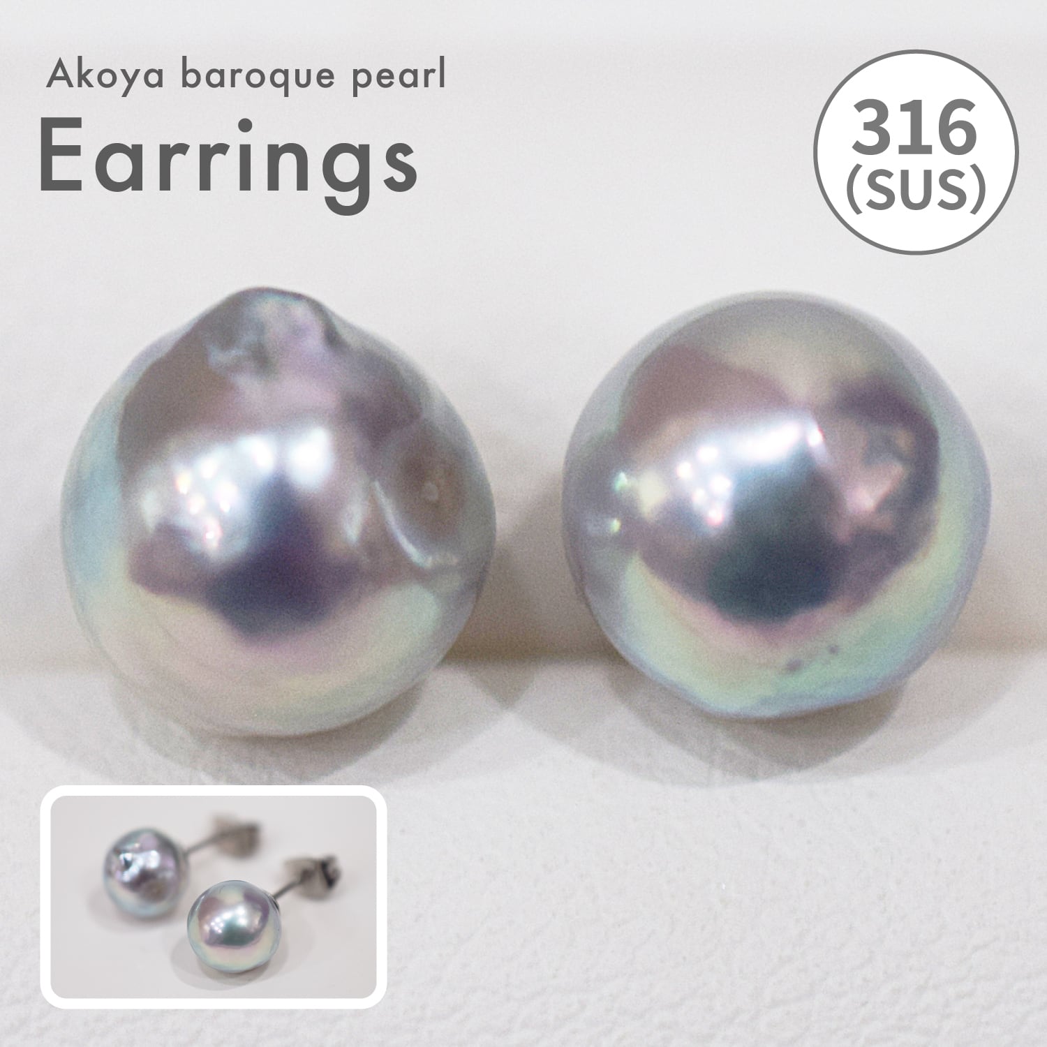 バロック 9mm - 9.5mm あこや真珠 ピアス サージカルステンレス 完成品 現品限り