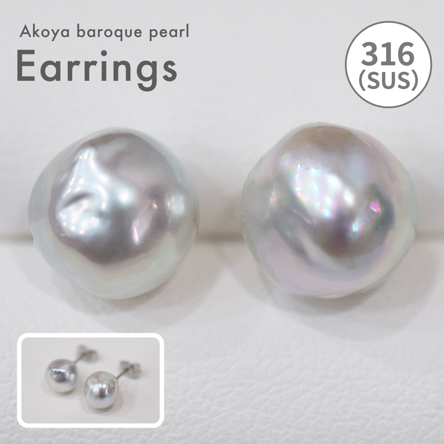 バロック 9mm - 9.5mm あこや真珠 ピアス サージカルステンレス 完成品 現品限り