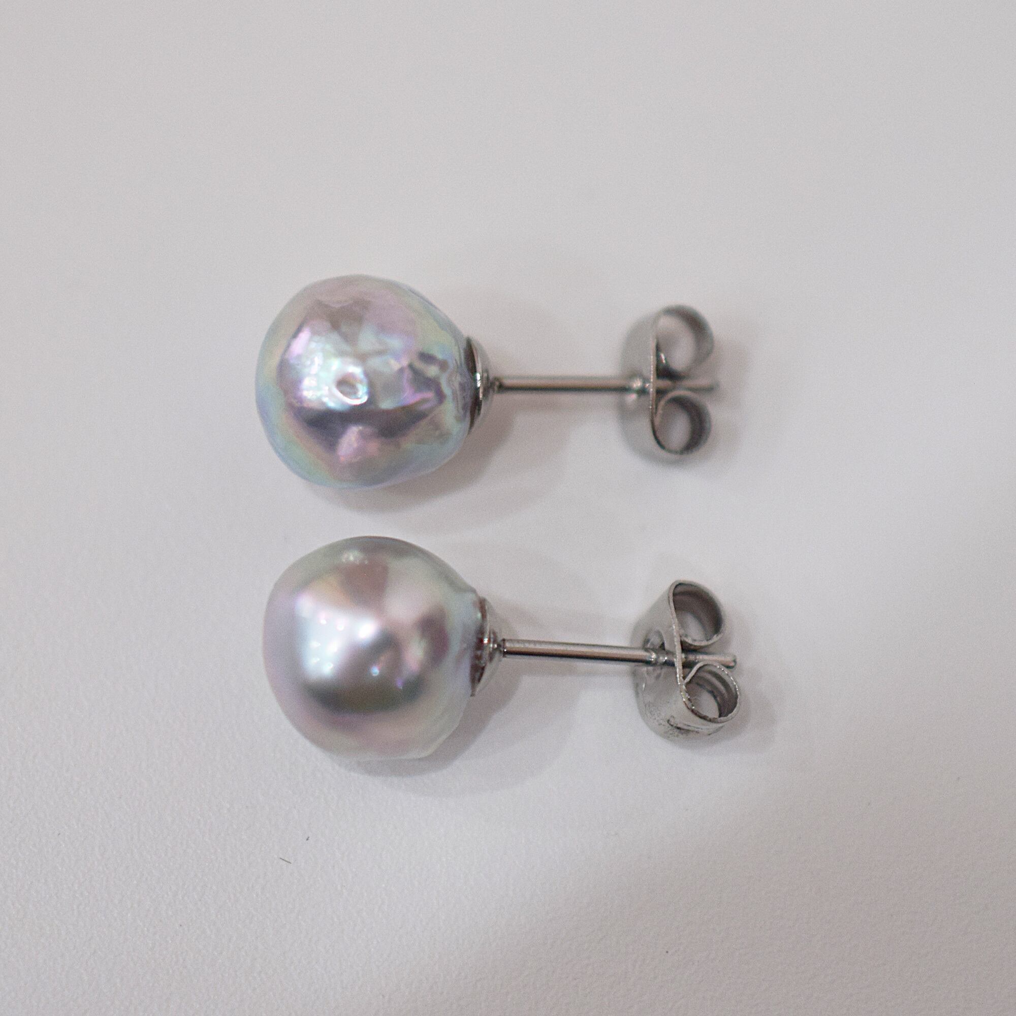 ころんとしたフォルムが可愛いあこや真珠のバロックパールのスタッドピアスです。