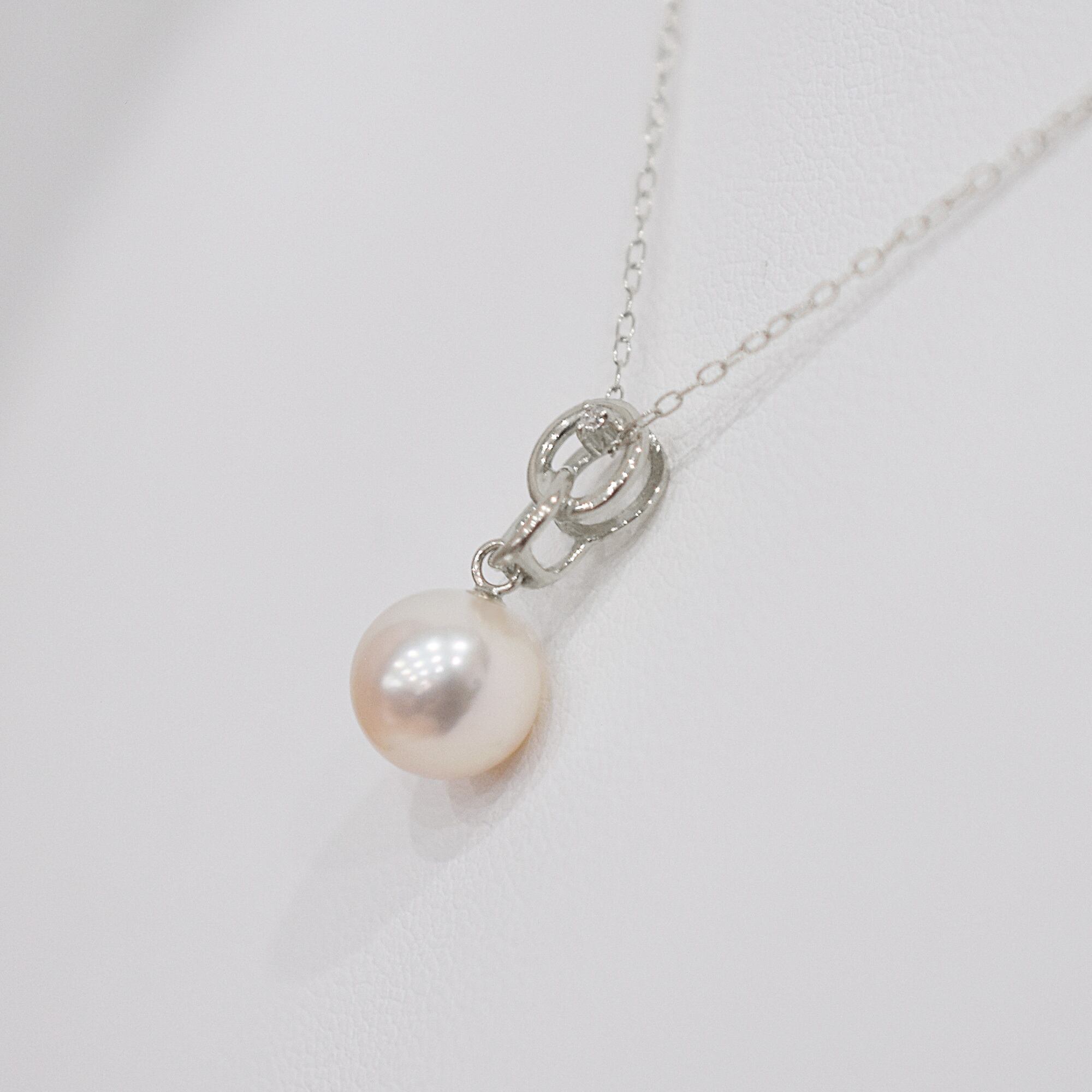 8mm - 8.5mm ホワイトピンク ペンダント ダイヤモンド付 あこや真珠