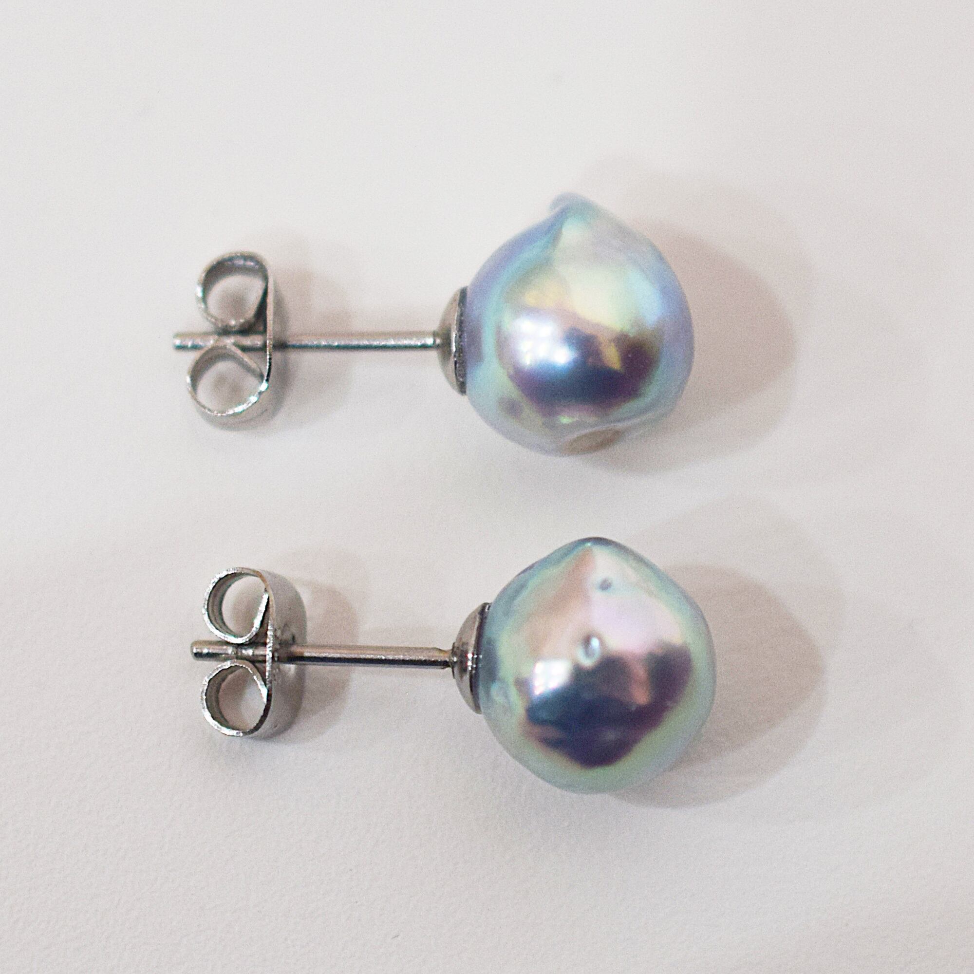 ころんとしたフォルムが可愛いあこや真珠のバロックパールのスタッドピアスです。