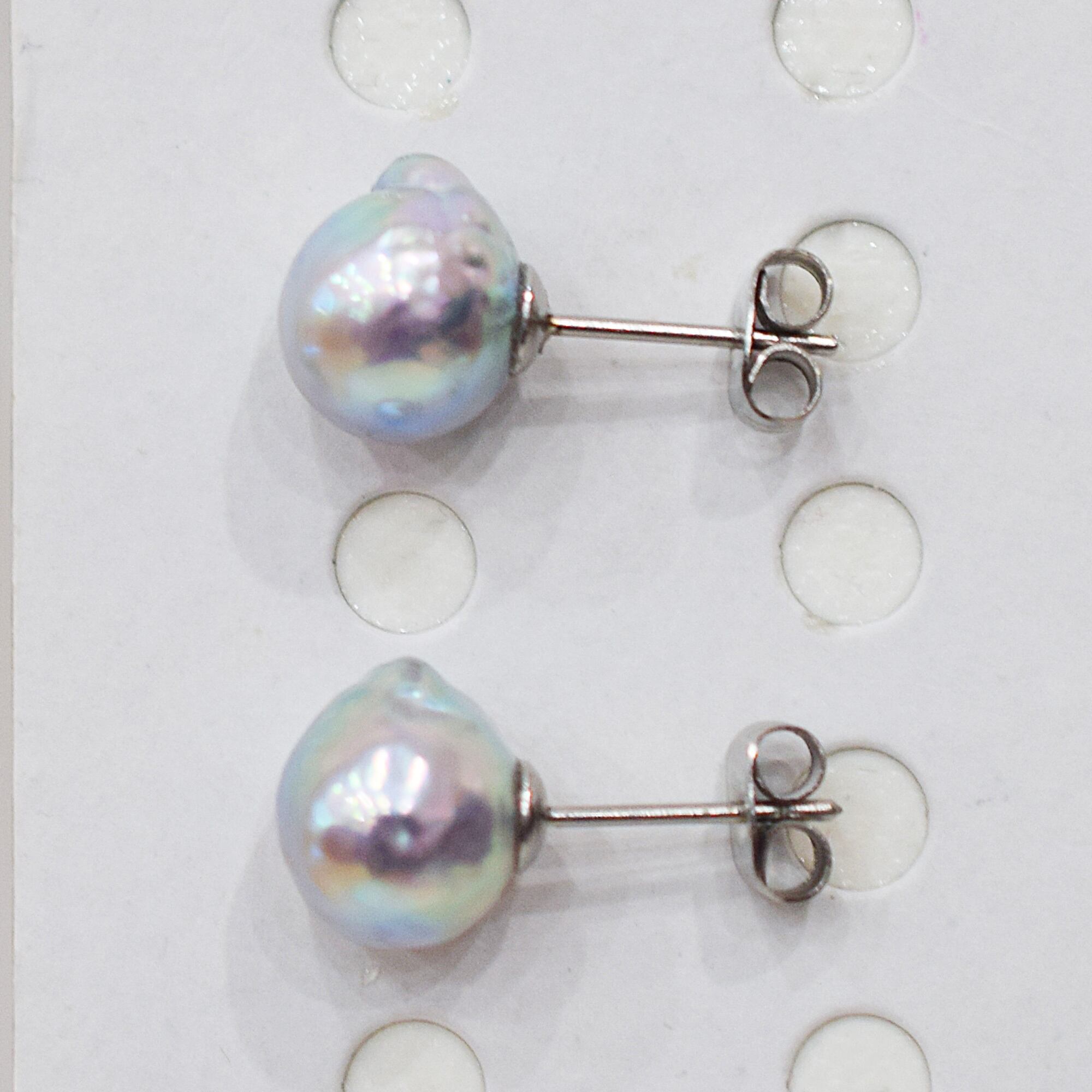 ころんとしたフォルムが可愛いあこや真珠のバロックパールのスタッドピアスです。