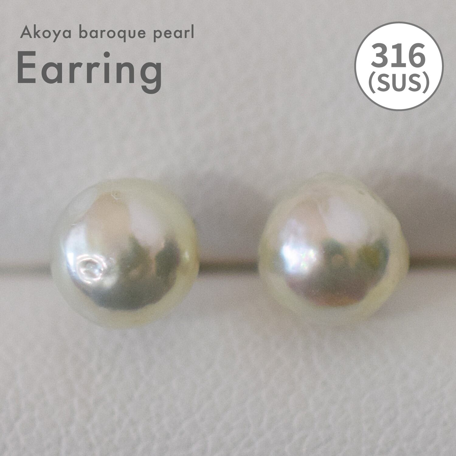 [pg121_2]6mm - 7mm バロック あこや真珠 ピアス サージカルステンレス 完成品