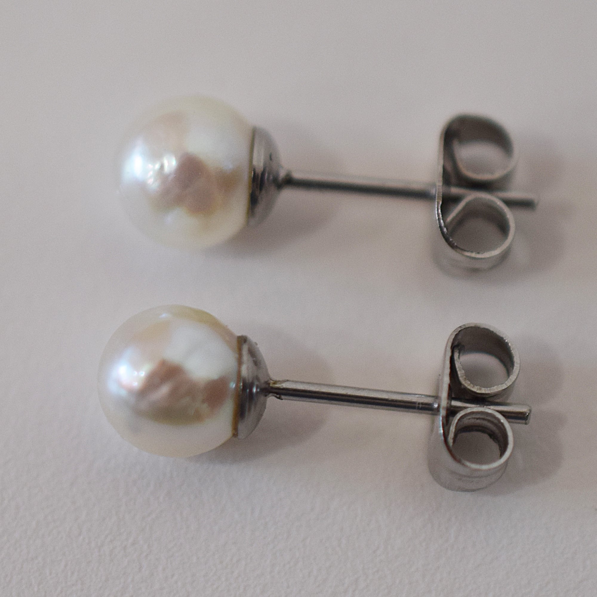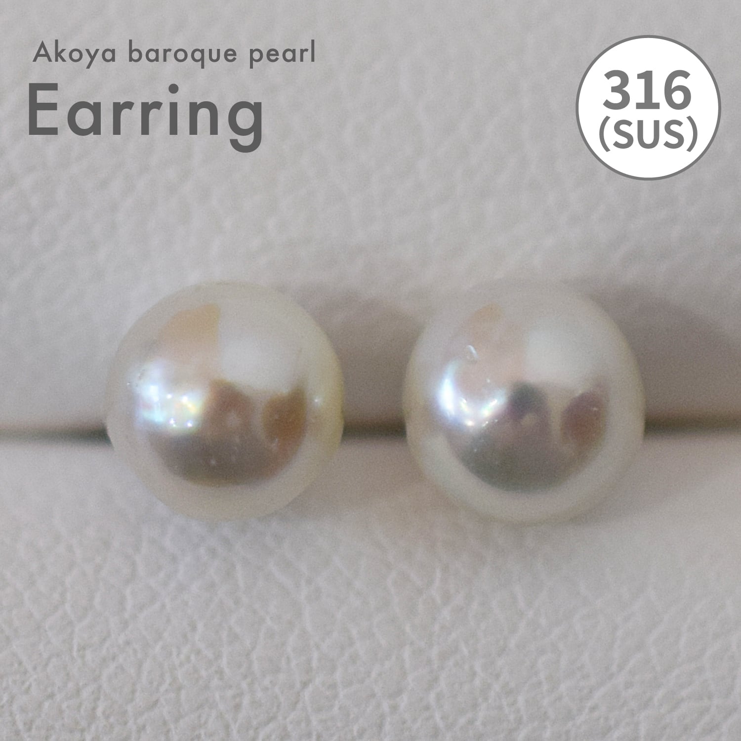 6mm - 7mm バロック あこや真珠 ピアス サージカルステンレス 完成品