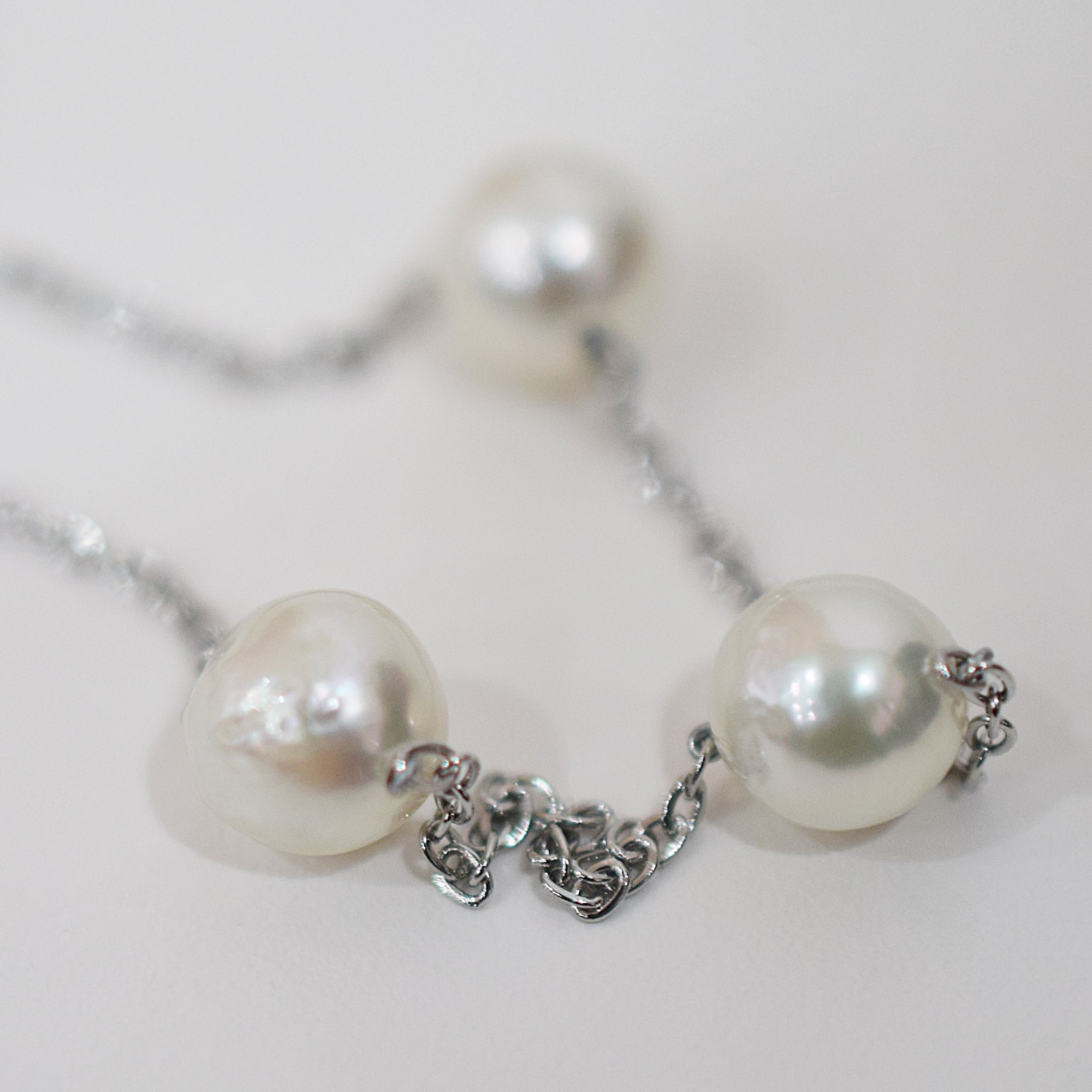 個性的なフォルムが魅力的なあこや真珠のバロックパールブレスレット。バロック特有のコロンとした形が存在感を放ちます。シンプルなステーションタイプです。