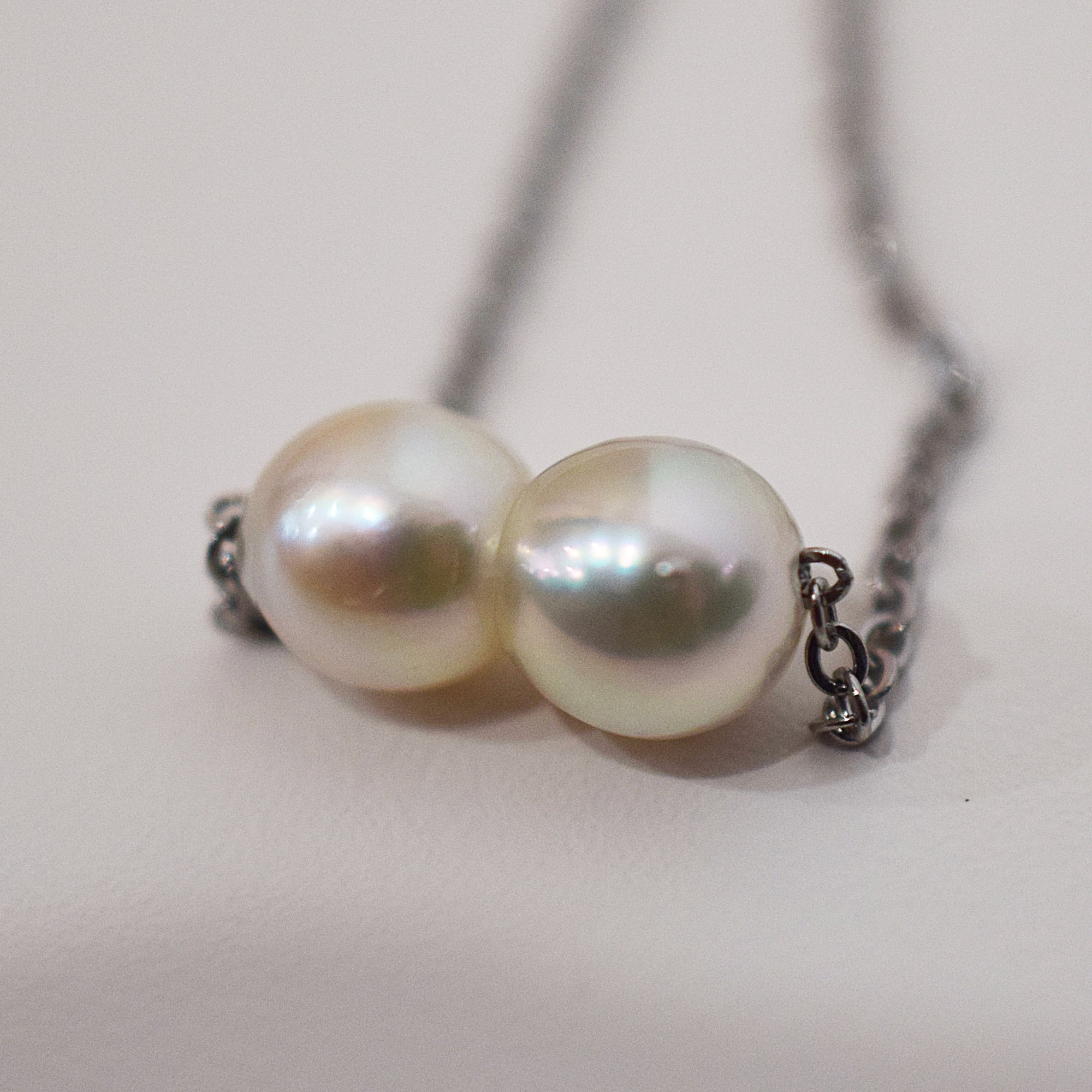 真珠がチェーンに固定されているタイプのネックレスです。