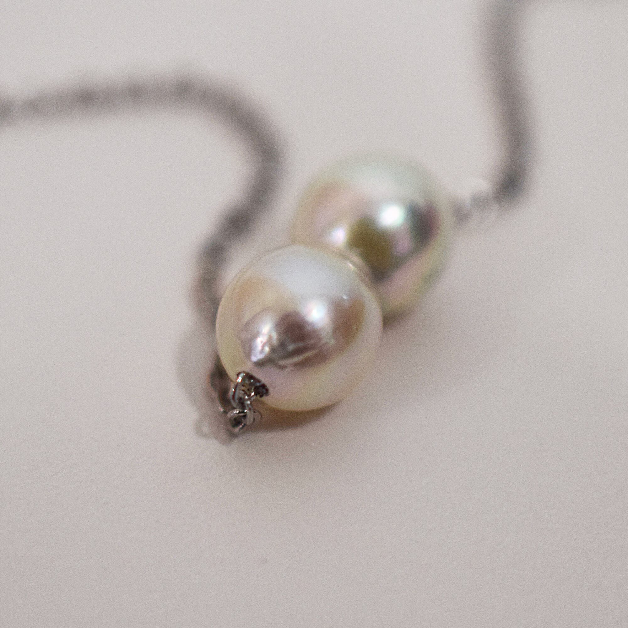 個性的なフォルムが魅力的なあこや真珠のツインネックレス。