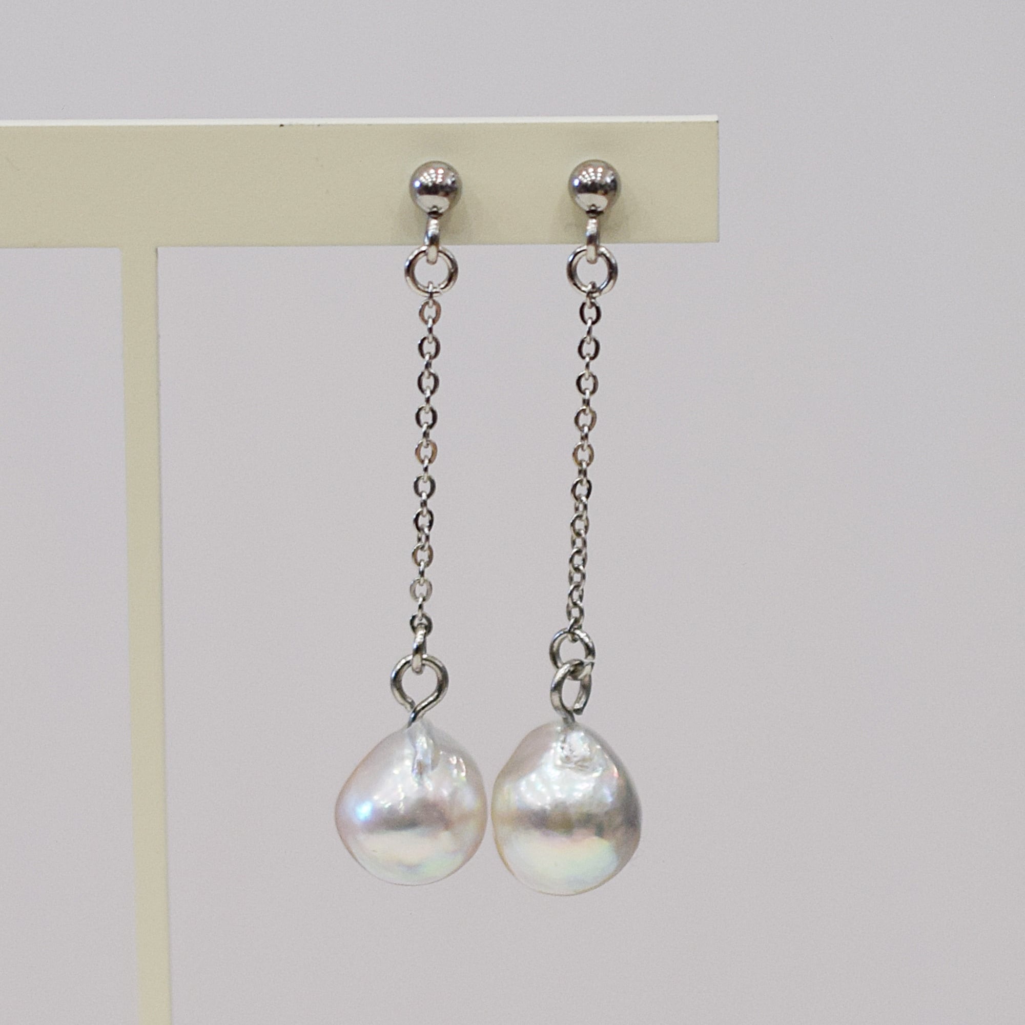 ころんとしたフォルムが可愛いあこや真珠のバロックパールの揺れるスタッドタイプのピアスです。