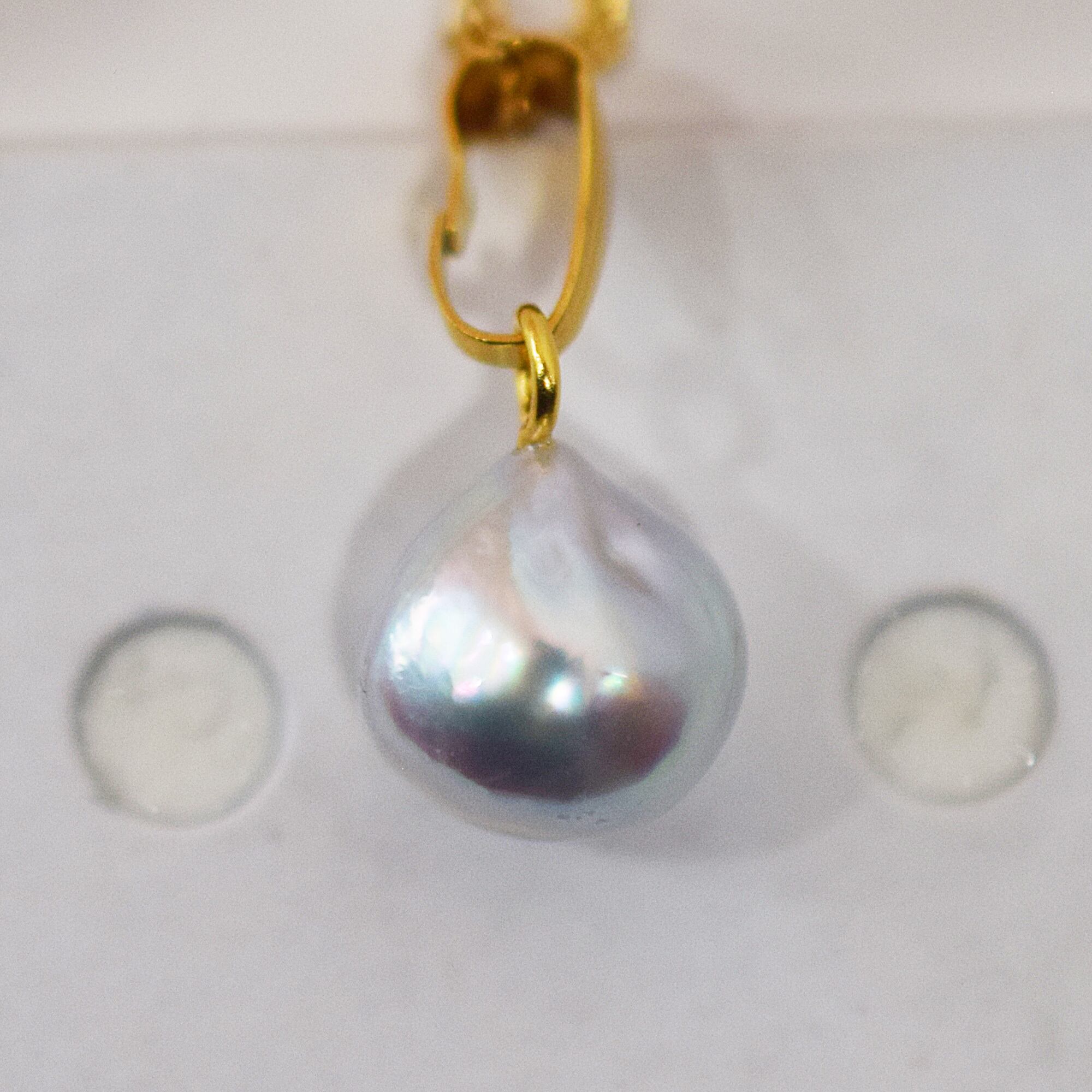 【在庫処分特別価格】[pg139_1]あこや真珠 9.5mm 大珠 バロックパール ナチュラル サージカルステンレス ネックレス ペンダントトップ
