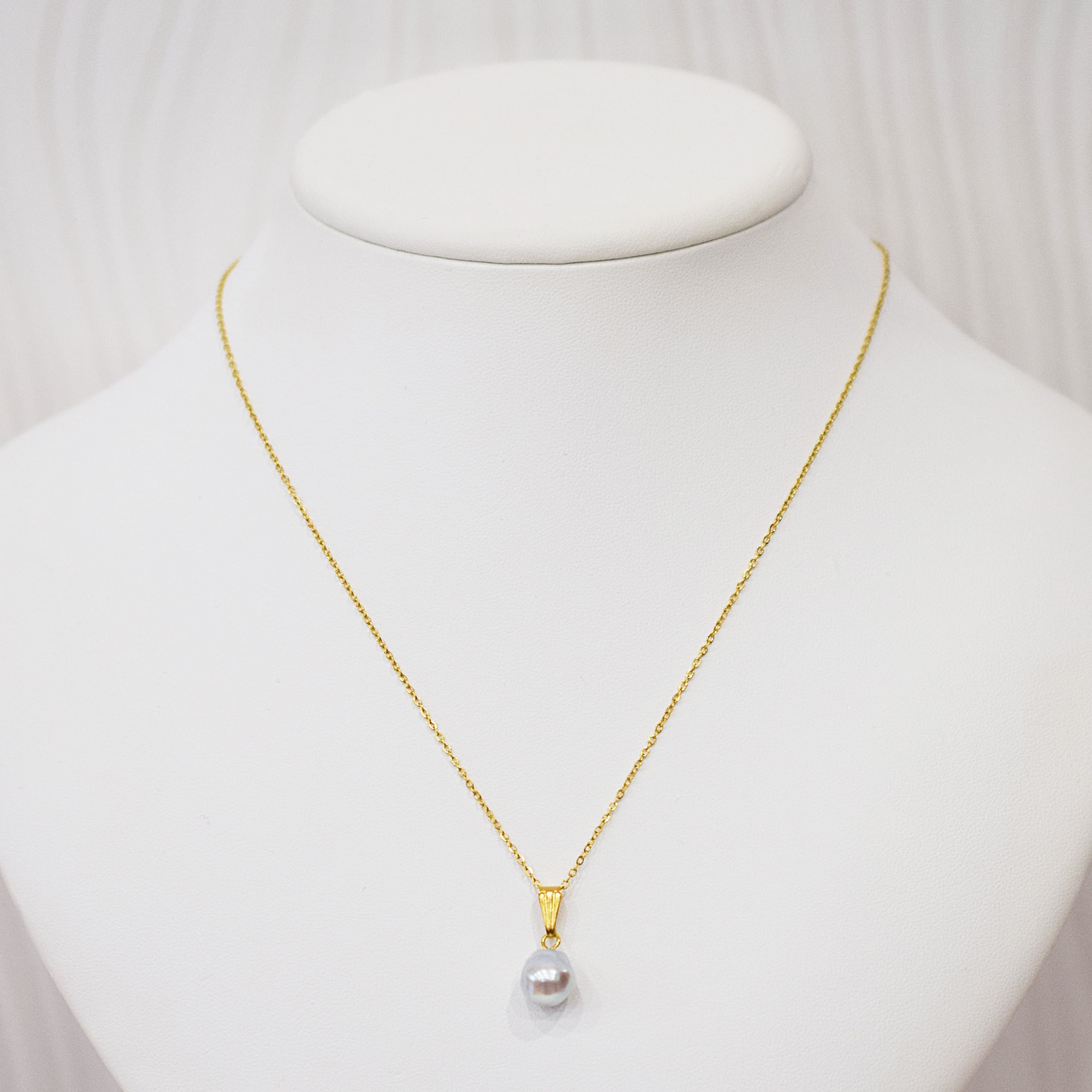 ナチュラルカラーの真珠が美しい1粒あこや真珠バロックパールネックレスです。カジュアルな装いにも合わせやすいシンプルなデザイン。