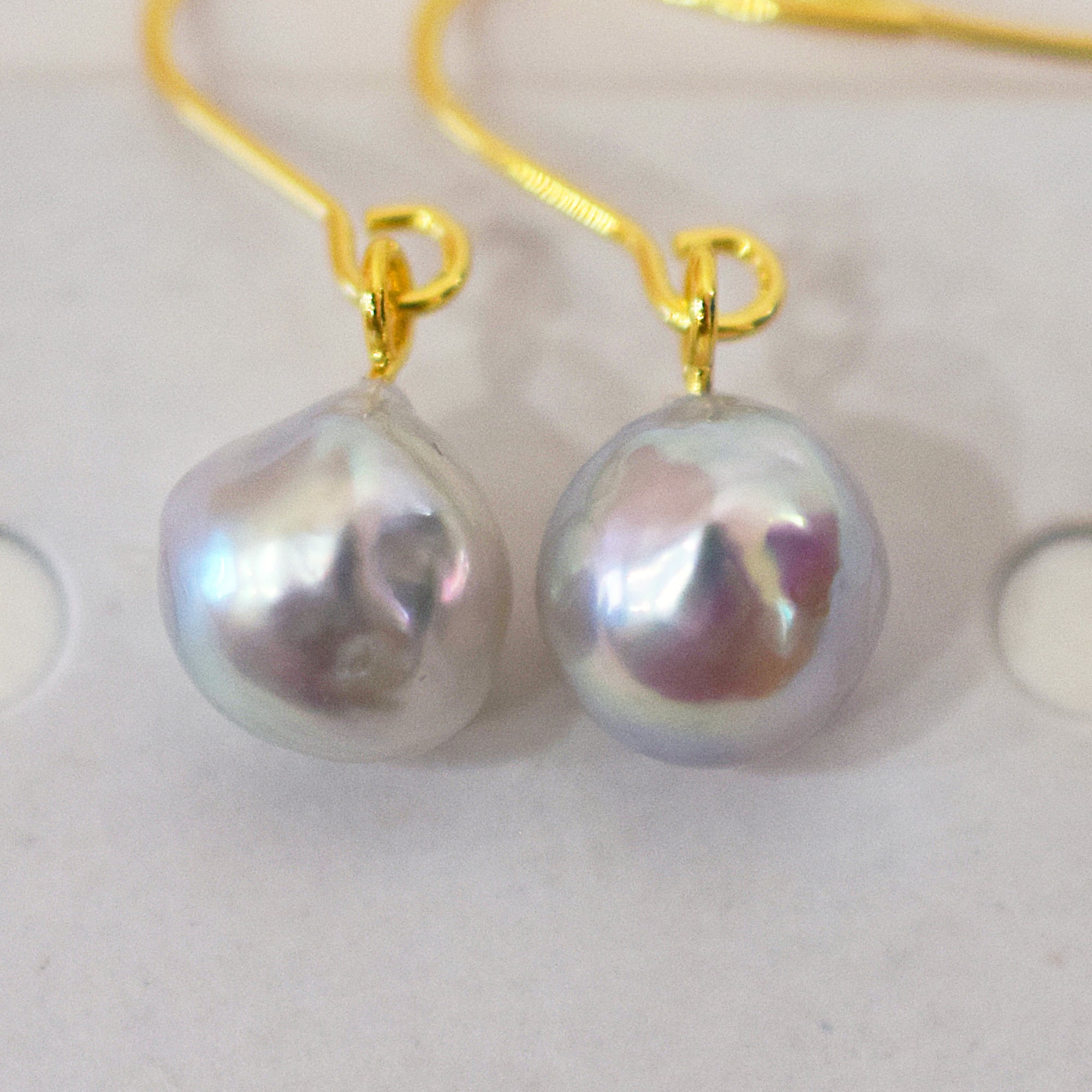ころんとしたフォルムが可愛いあこや真珠バロックパールのフックピアスです。