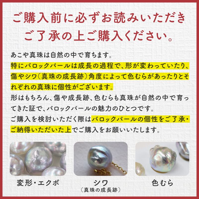 訳あり あこや真珠 11mm バロックパール スルーネックレス ナチュラル サージカルステンレス