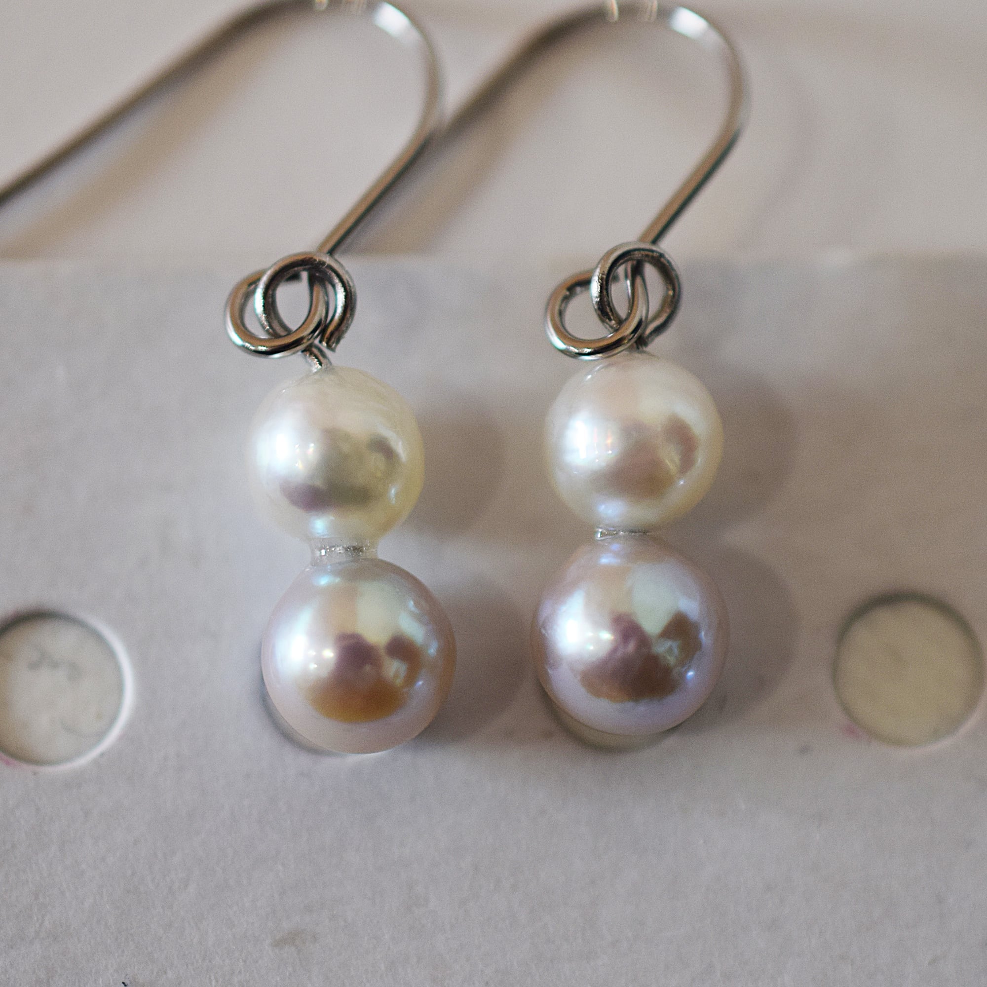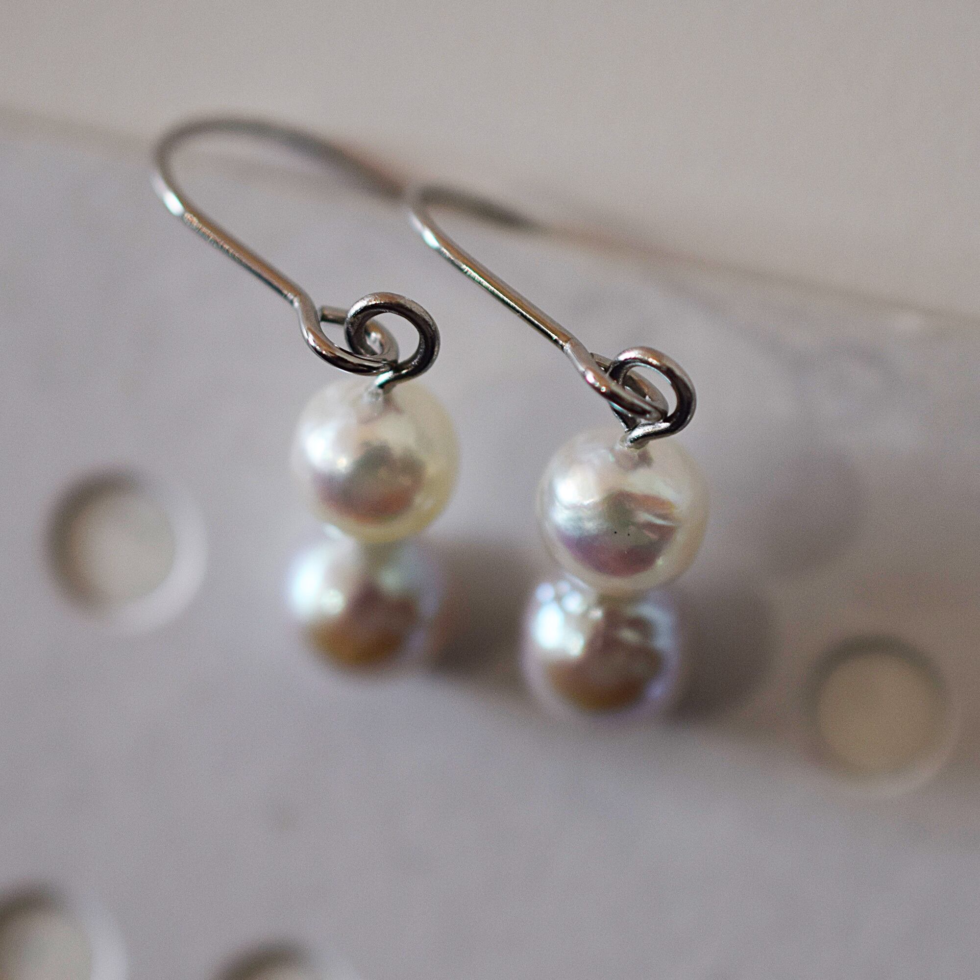 あこや真珠ナチュラルカラーパールのフックピアス。