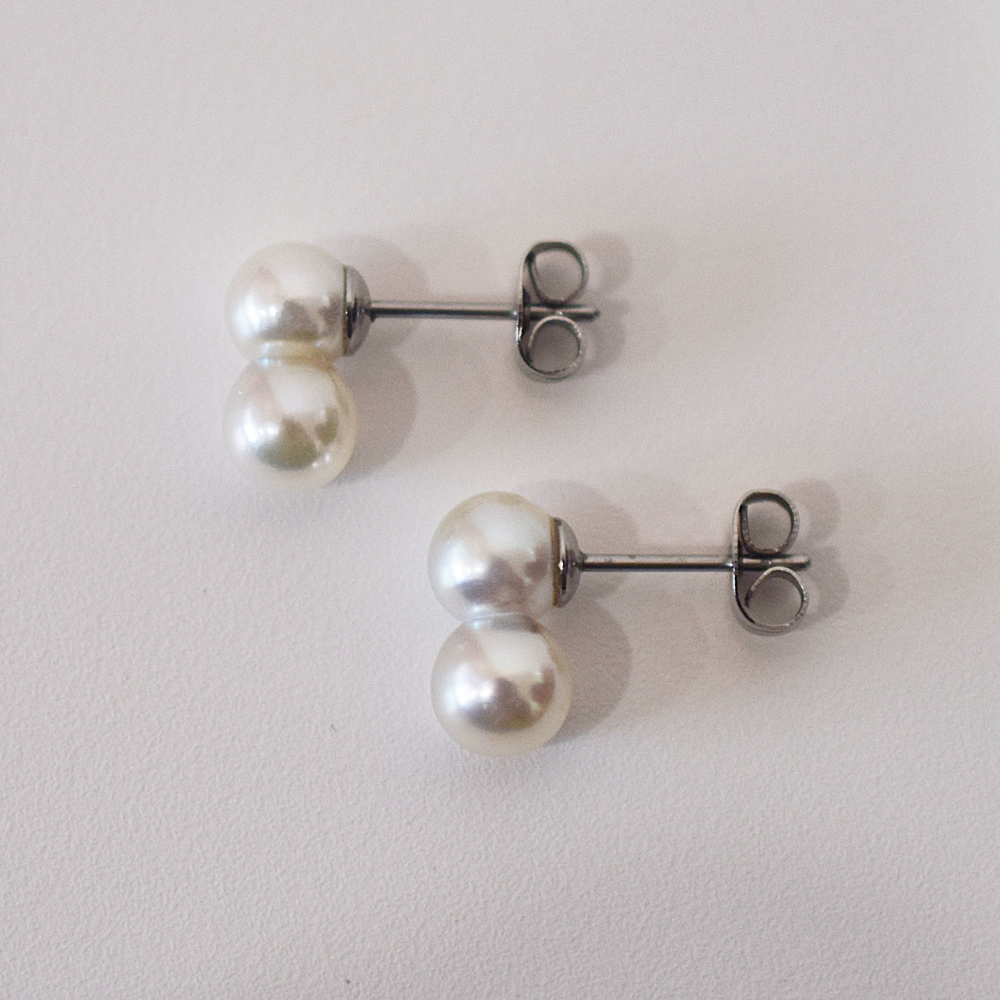 【ご予約商品】あこや真珠 バロックパール ツインスタッドピアス ダブルパールピアス スルーネックレス サージカルステンレス