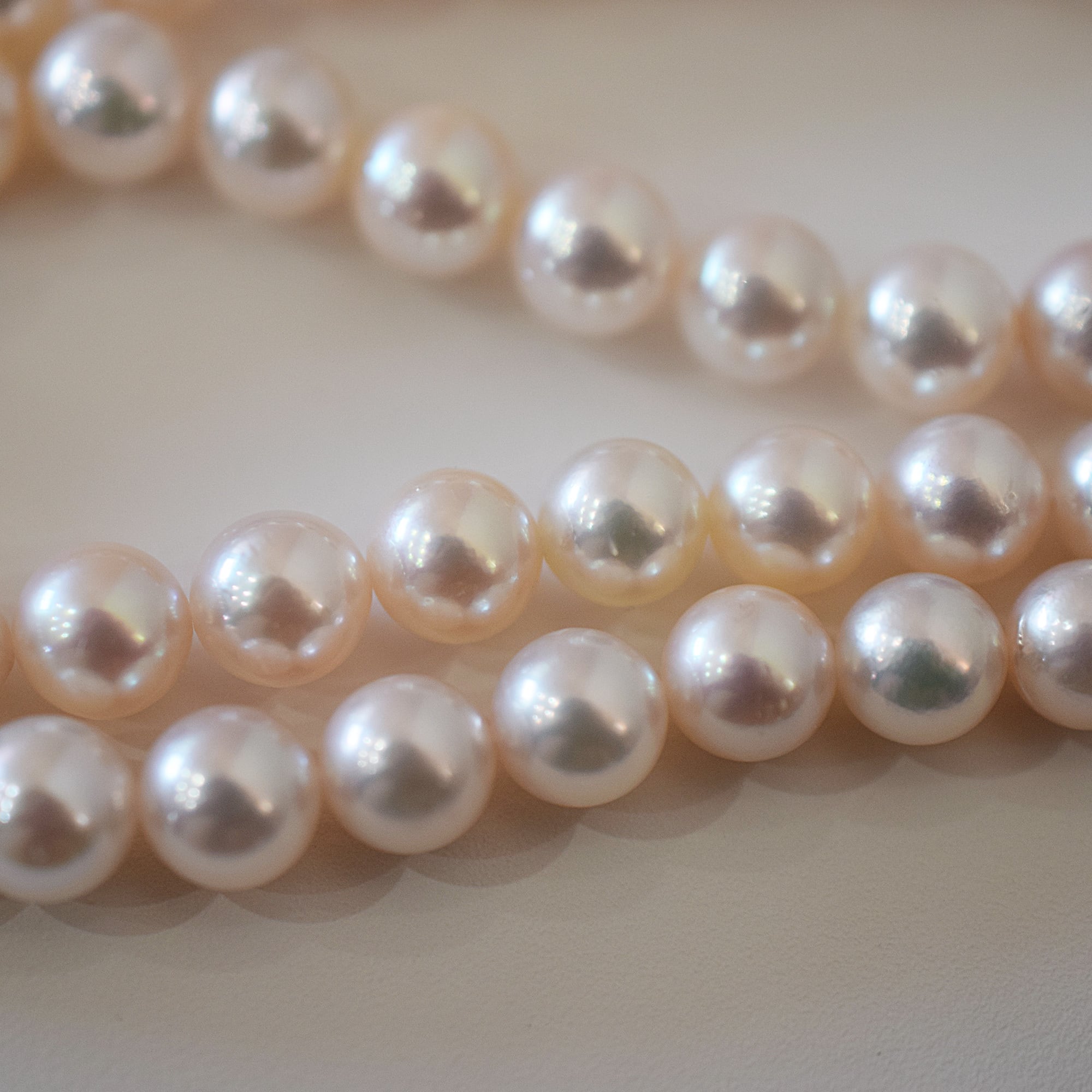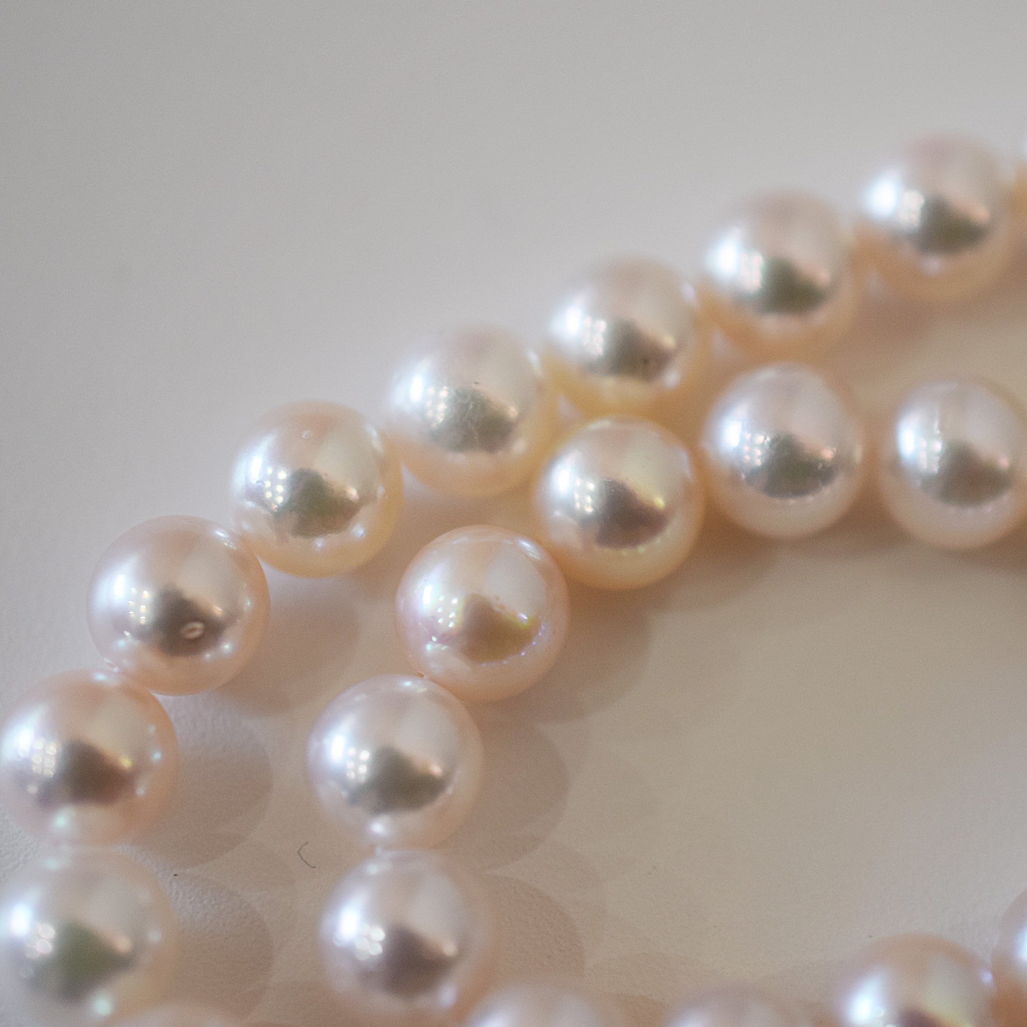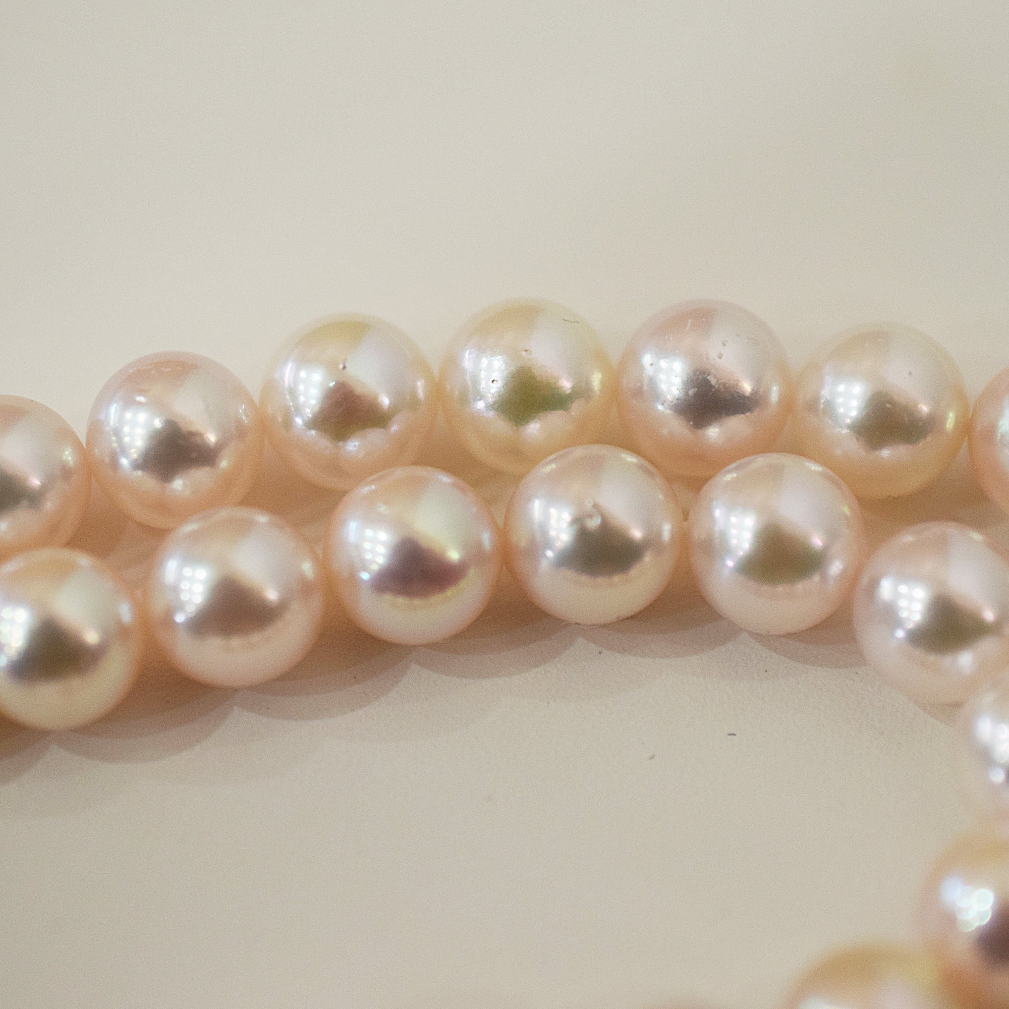 特別価格!7.5mm - 8mm ラウンド〜セミラウンド ホワイトピンク ネックレス あこや真珠