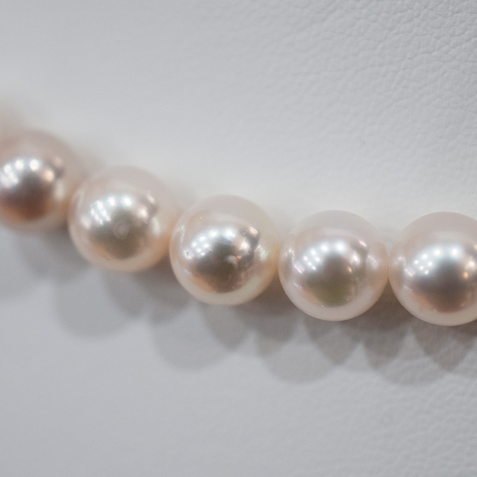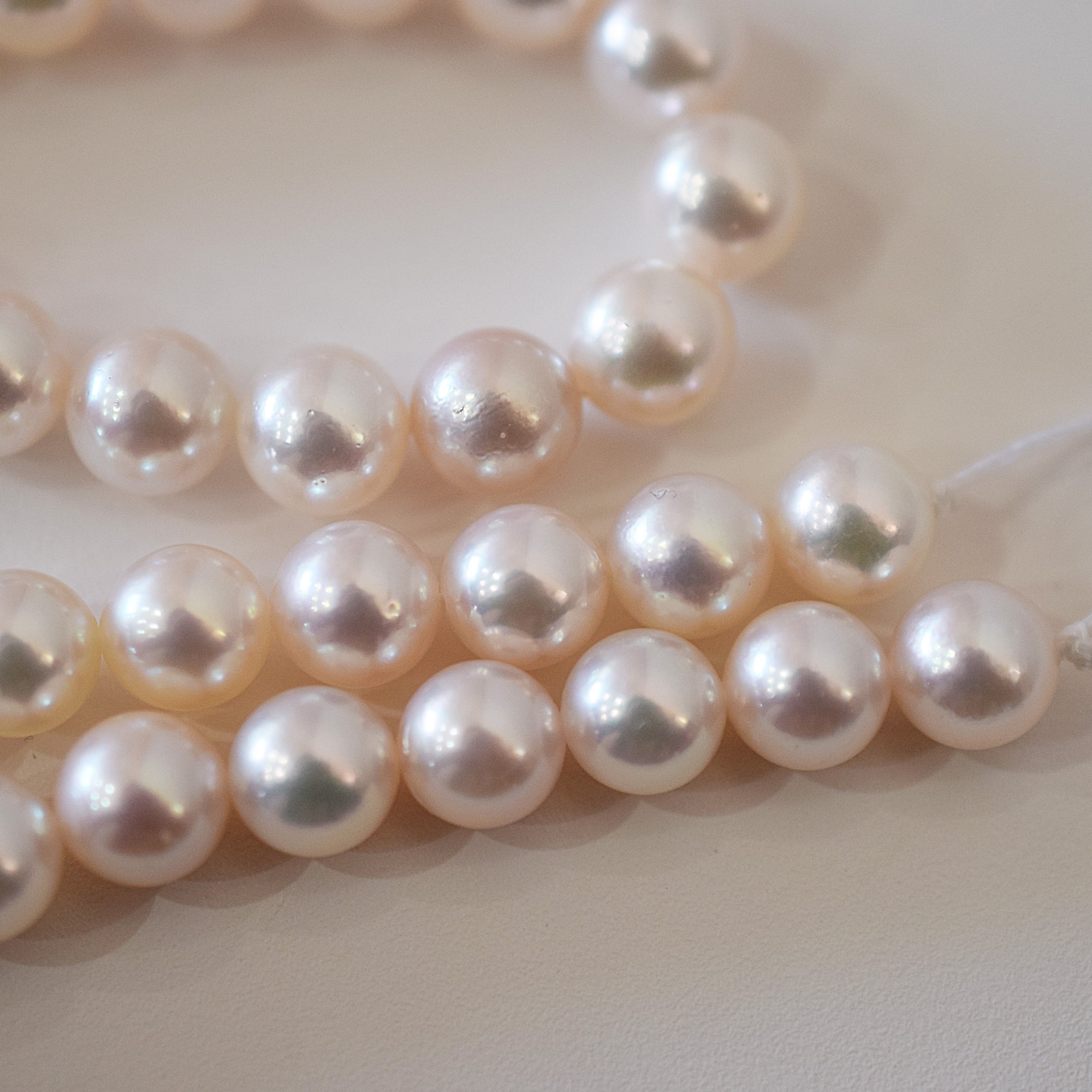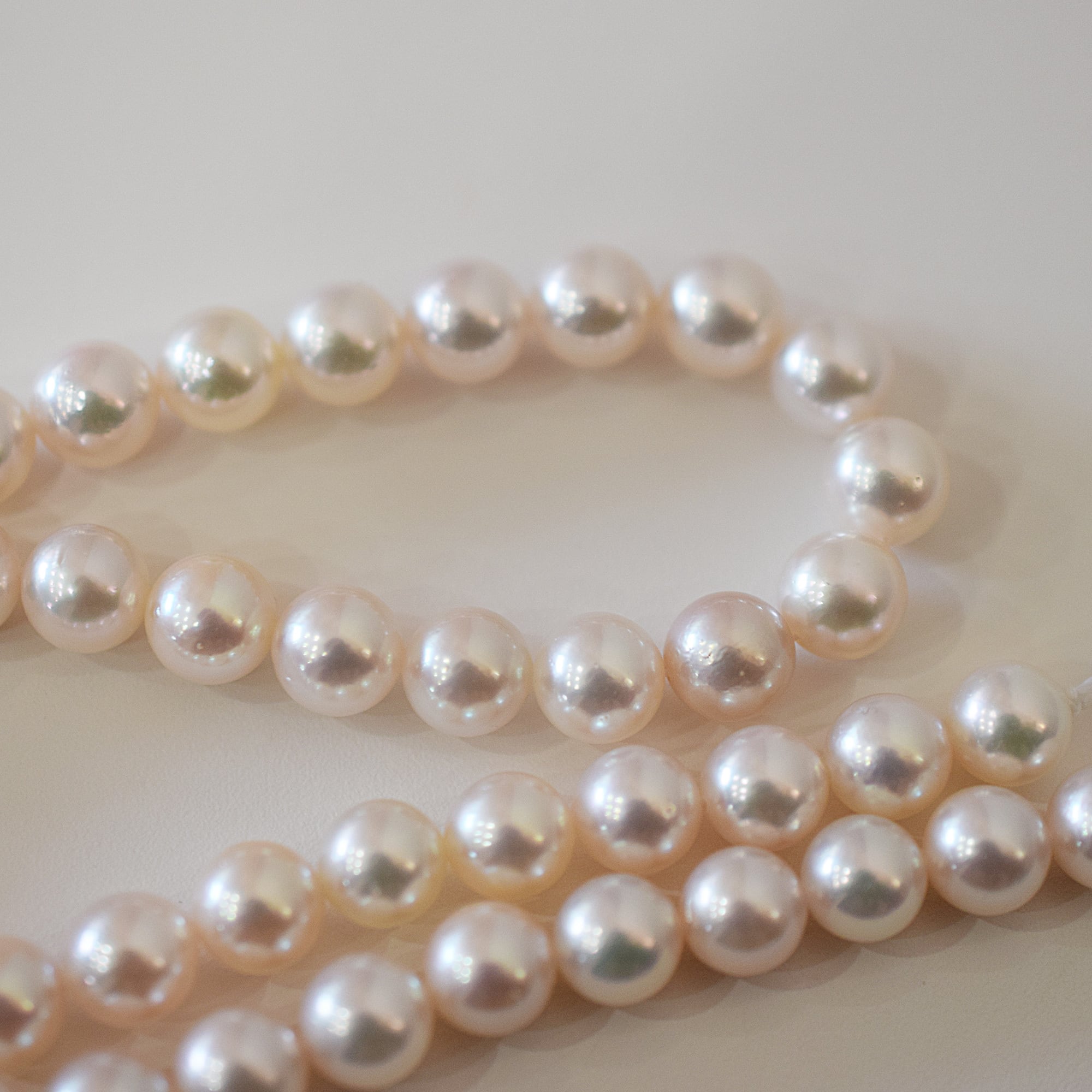 特別価格!7.5mm - 8mm ラウンド〜セミラウンド ホワイトピンク ネックレス あこや真珠