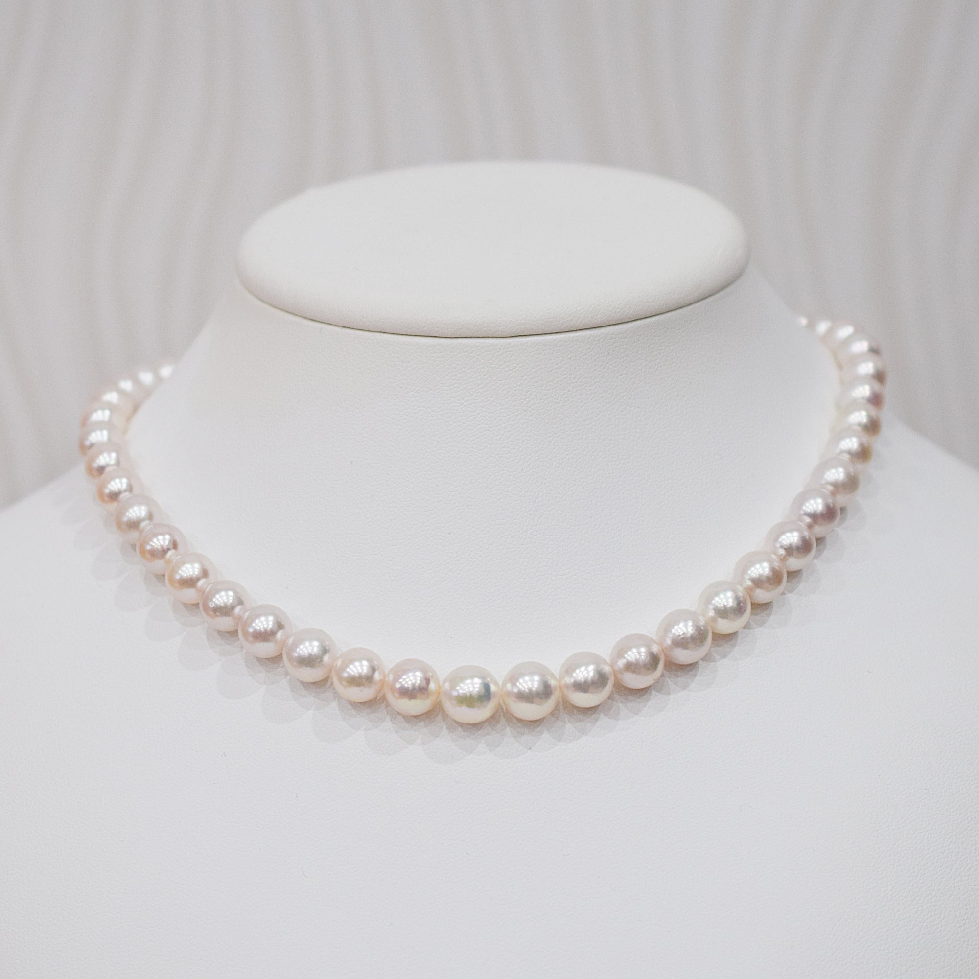 特別価格!7.5mm - 9.5mm ラウンド〜セミラウンド ホワイトピンク ネックレス あこや真珠