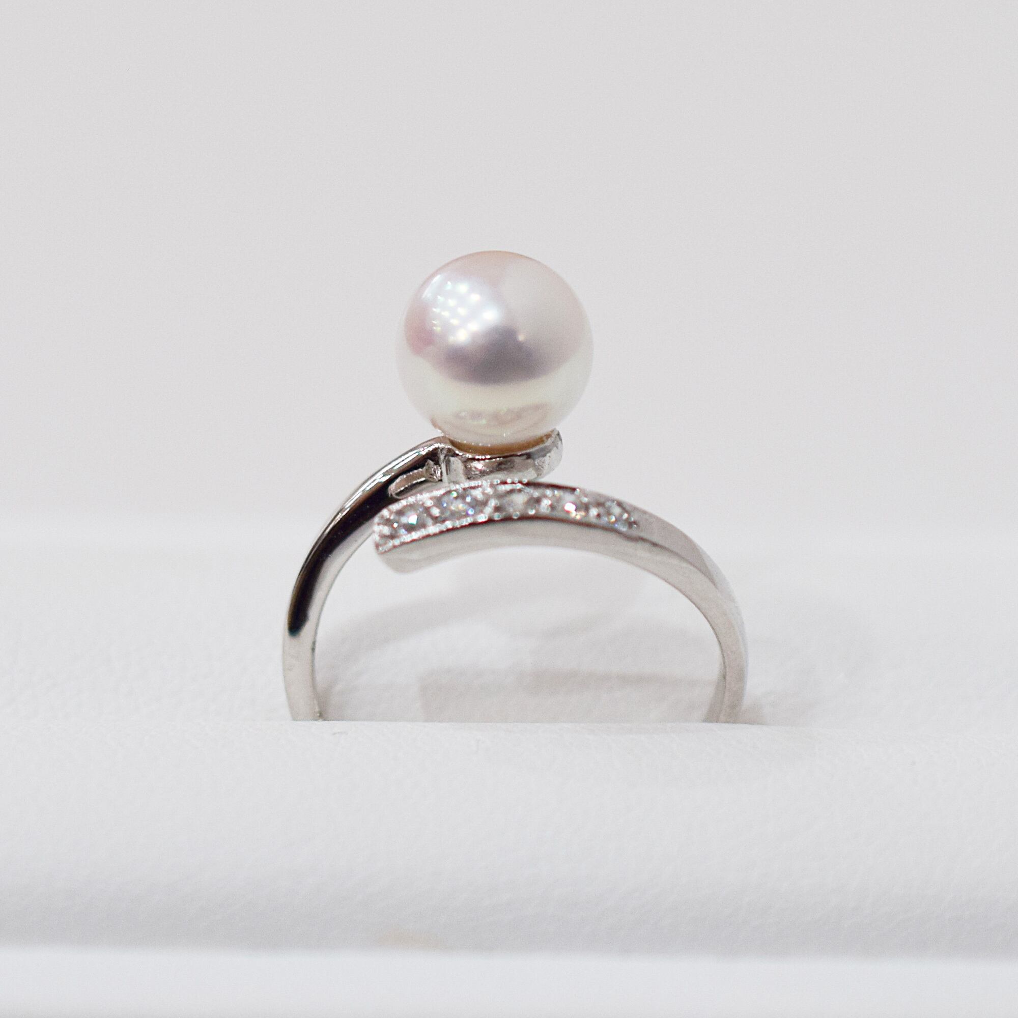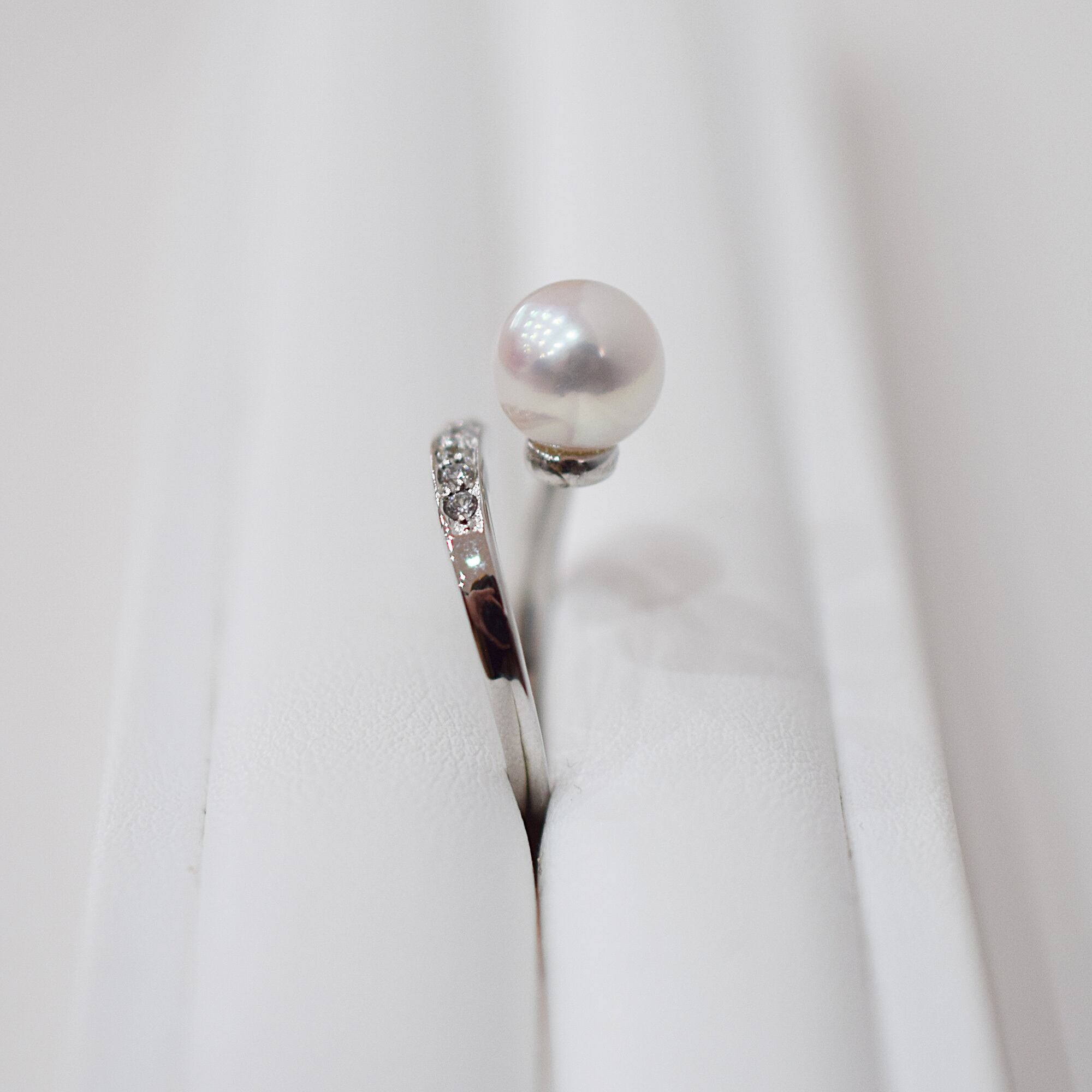 現品限り!ホワイトピンクが可愛いあこや真珠パールリングです。