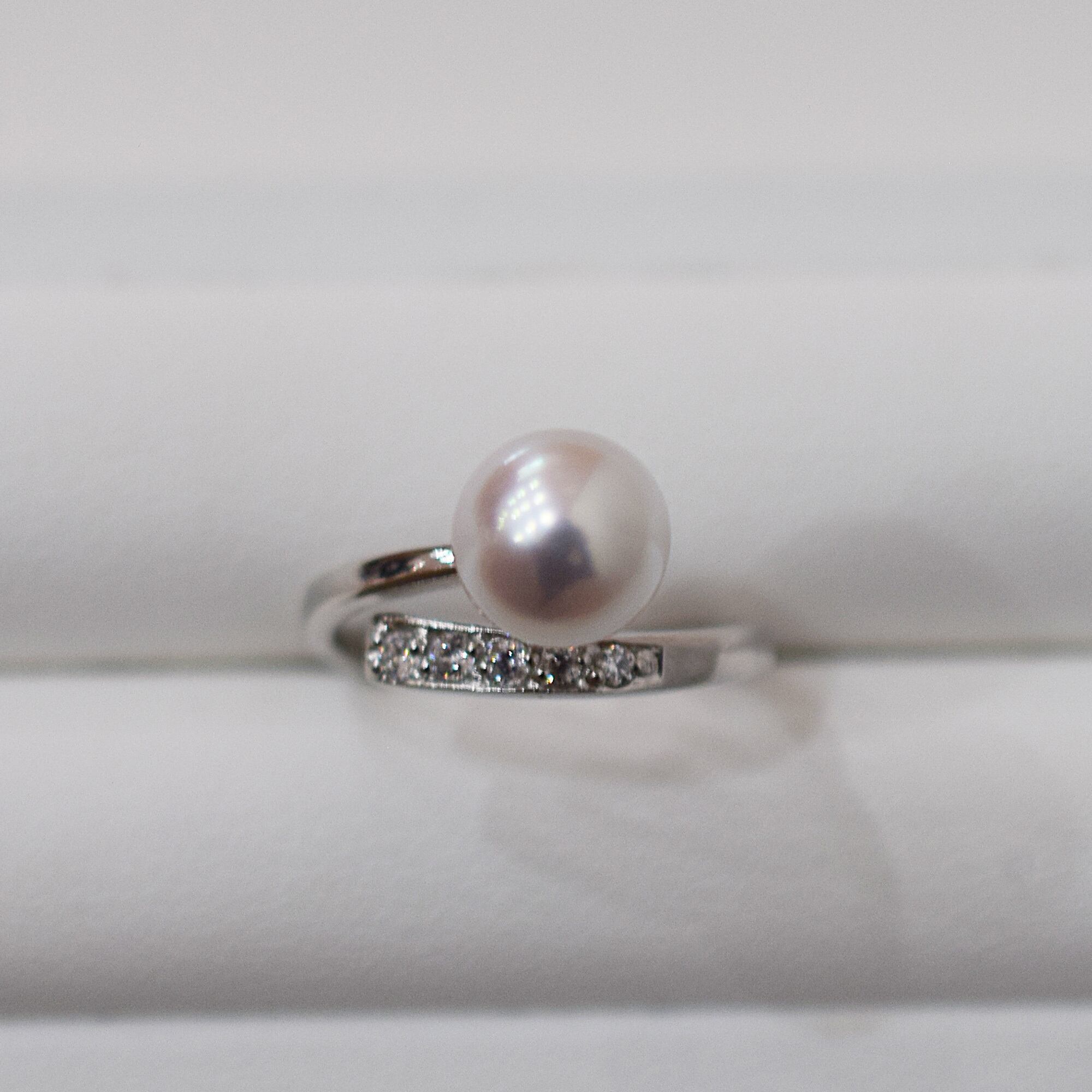 現品限り!ホワイトピンクが可愛いあこや真珠パールリングです。