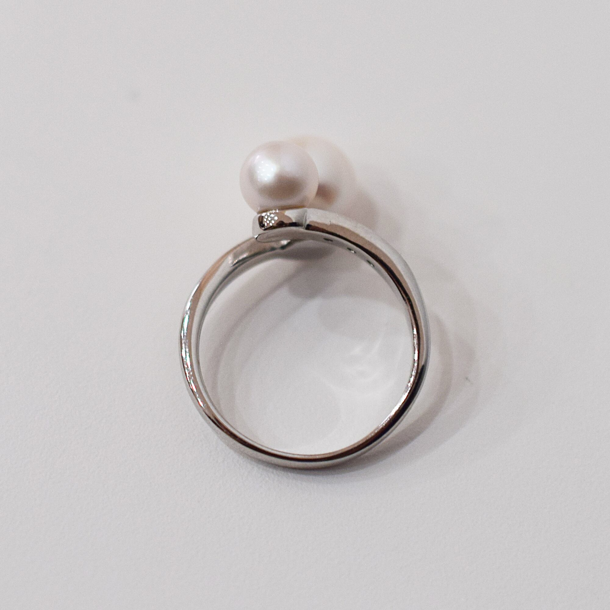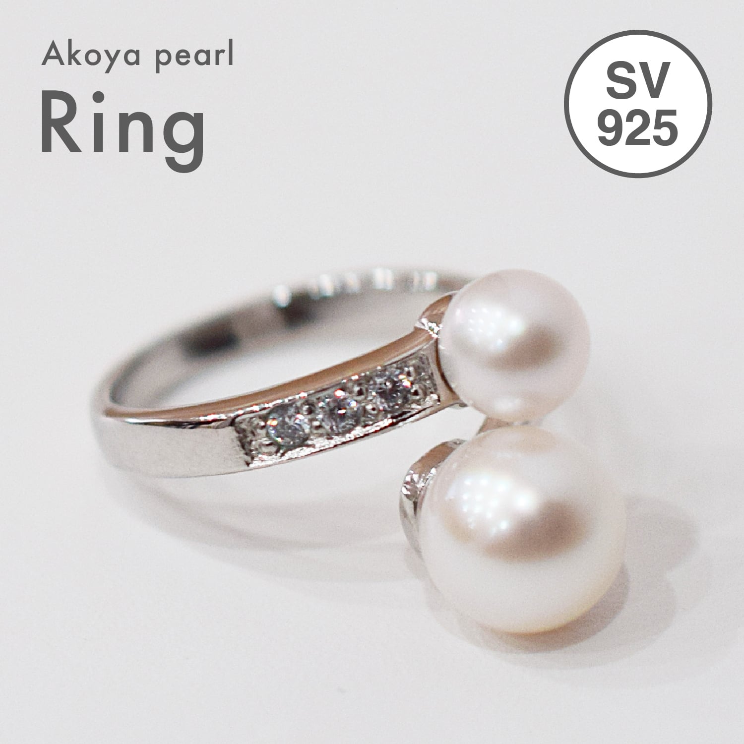 あこや真珠 7.5mm - 8mm × 5.5mm - 6mm ホワイトピンク リング SV925
