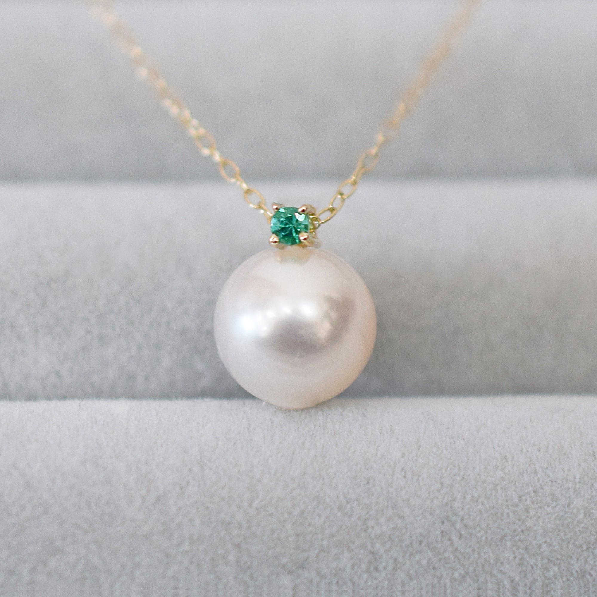 8 - 8.5mm ホワイトピンク ペンダント ネックレス 5月 誕生石 エメラルド あこや真珠