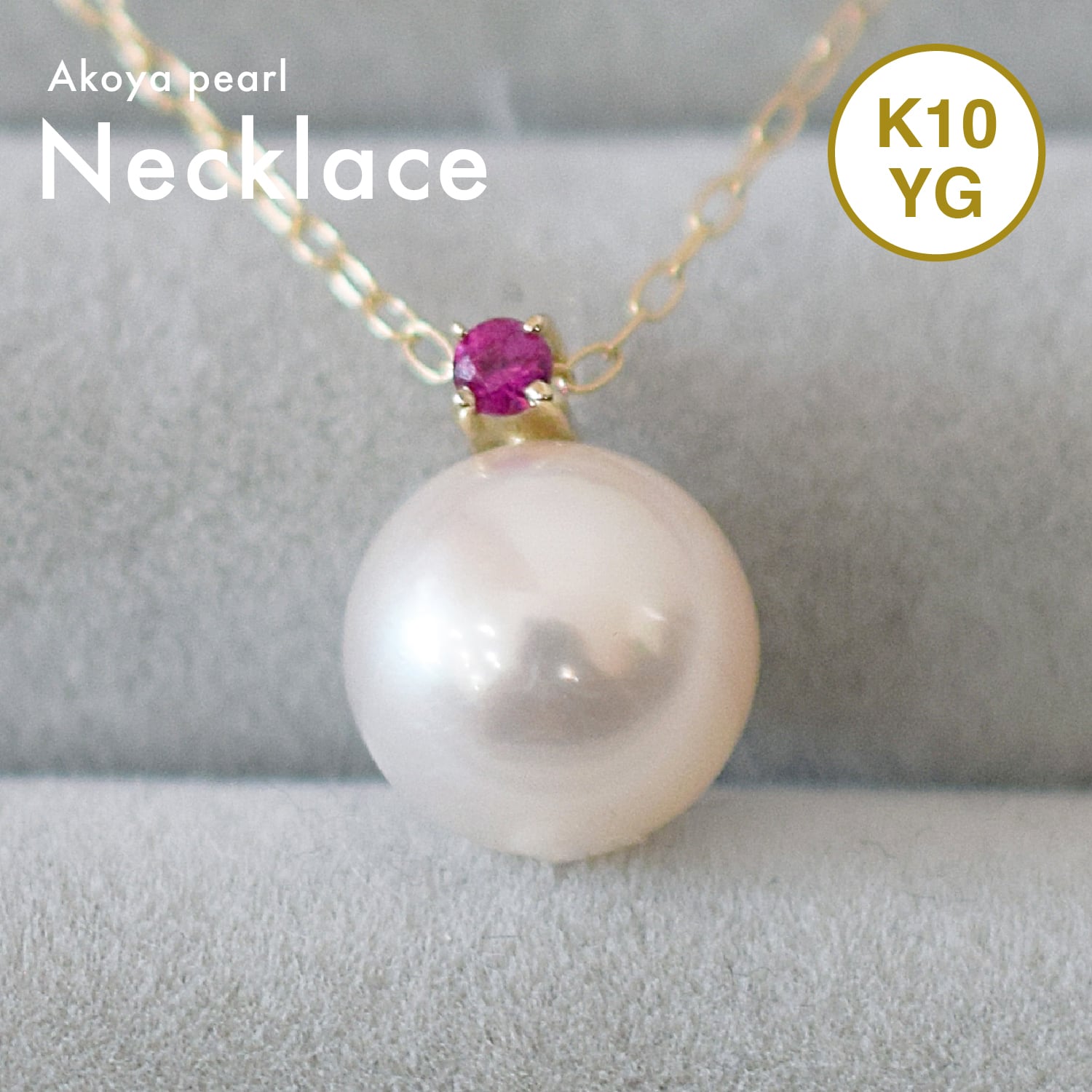 8 - 8.5mm ホワイトピンク ペンダント ネックレス 7月 誕生石 ルビー あこや真珠