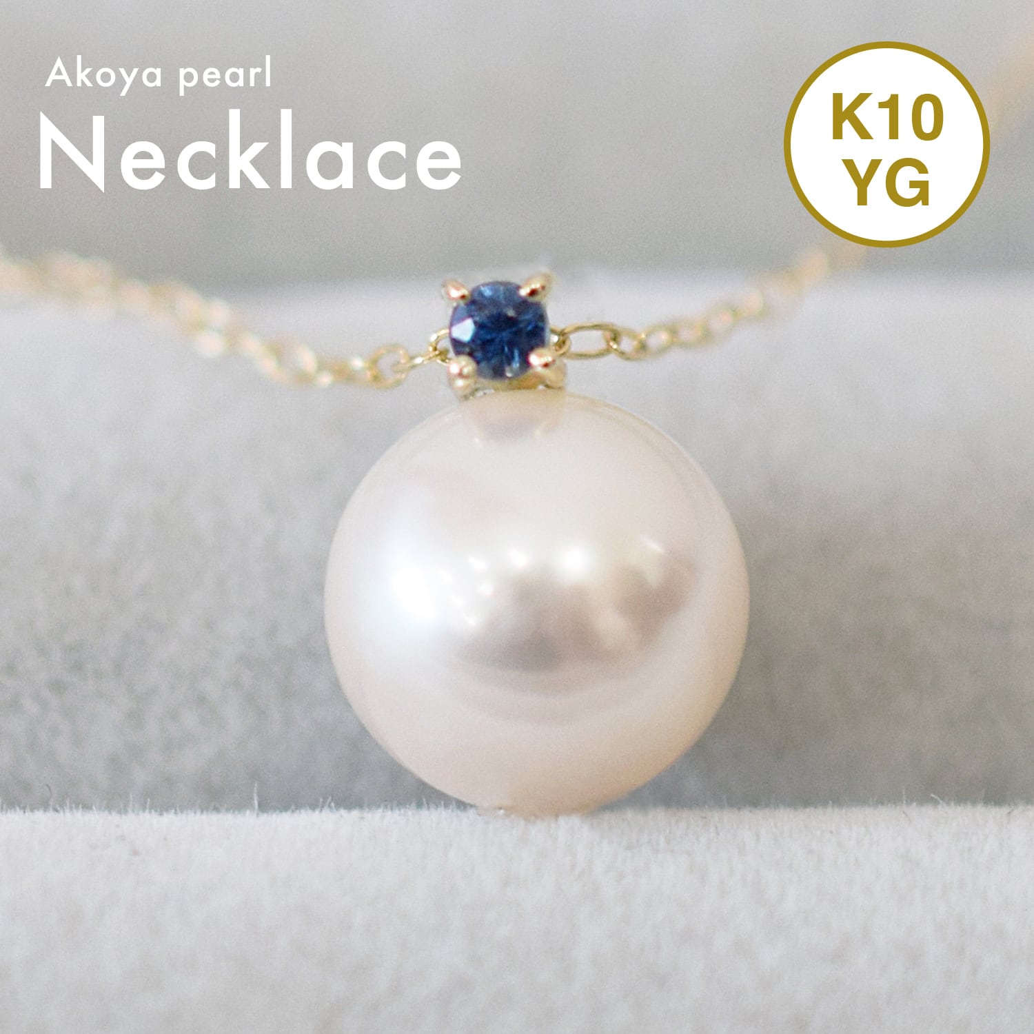 8 - 8.5mm ホワイトピンク ペンダント ネックレス 9月 誕生石 サファイア あこや真珠