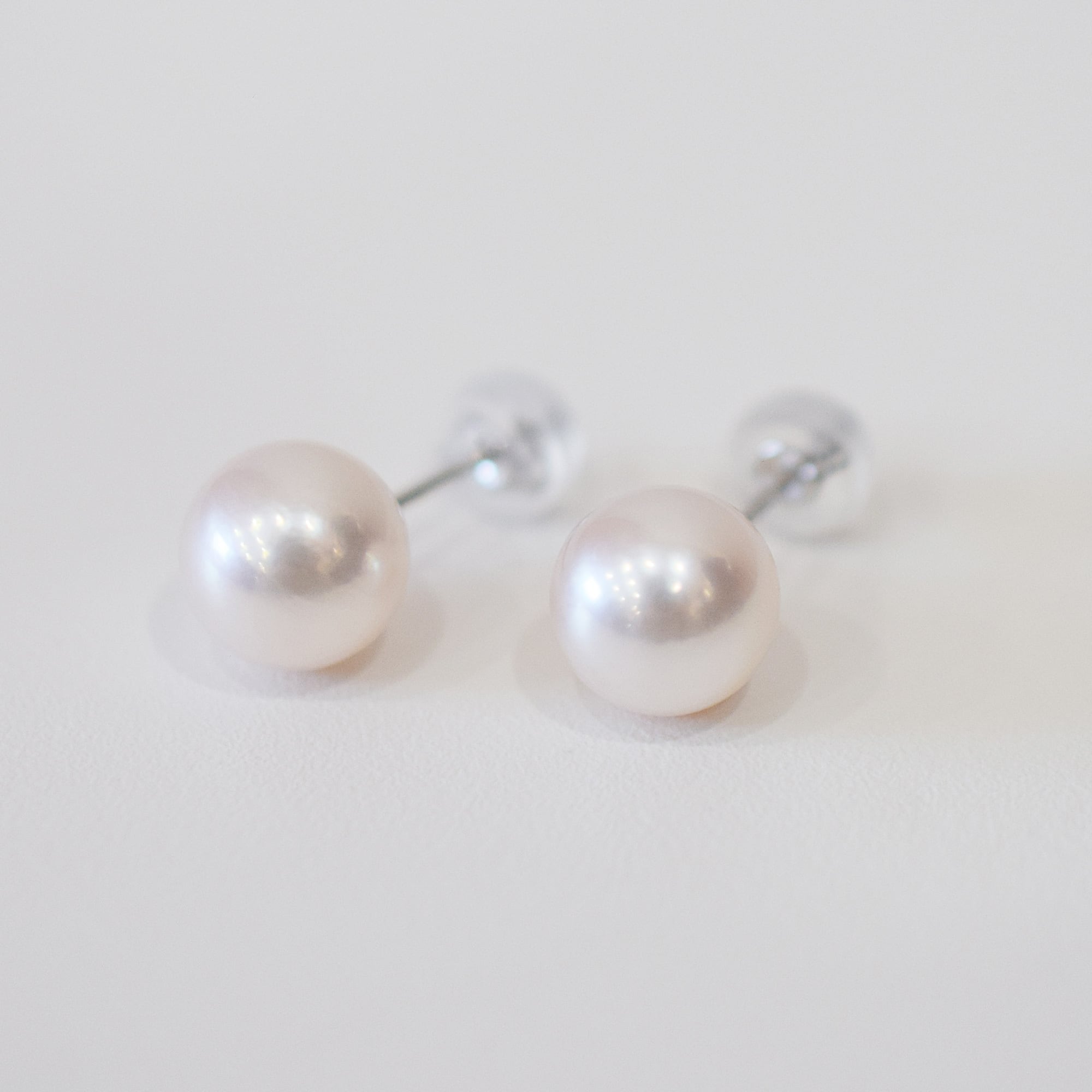 現品限り!ホワイトピンクのあこや真珠ピアスです。