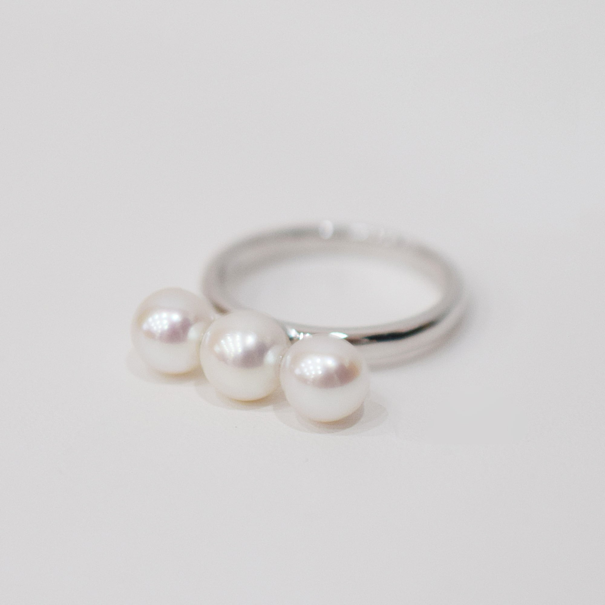 あこや真珠パールリングです。3連のラインが手元を上品に演出してくれます。