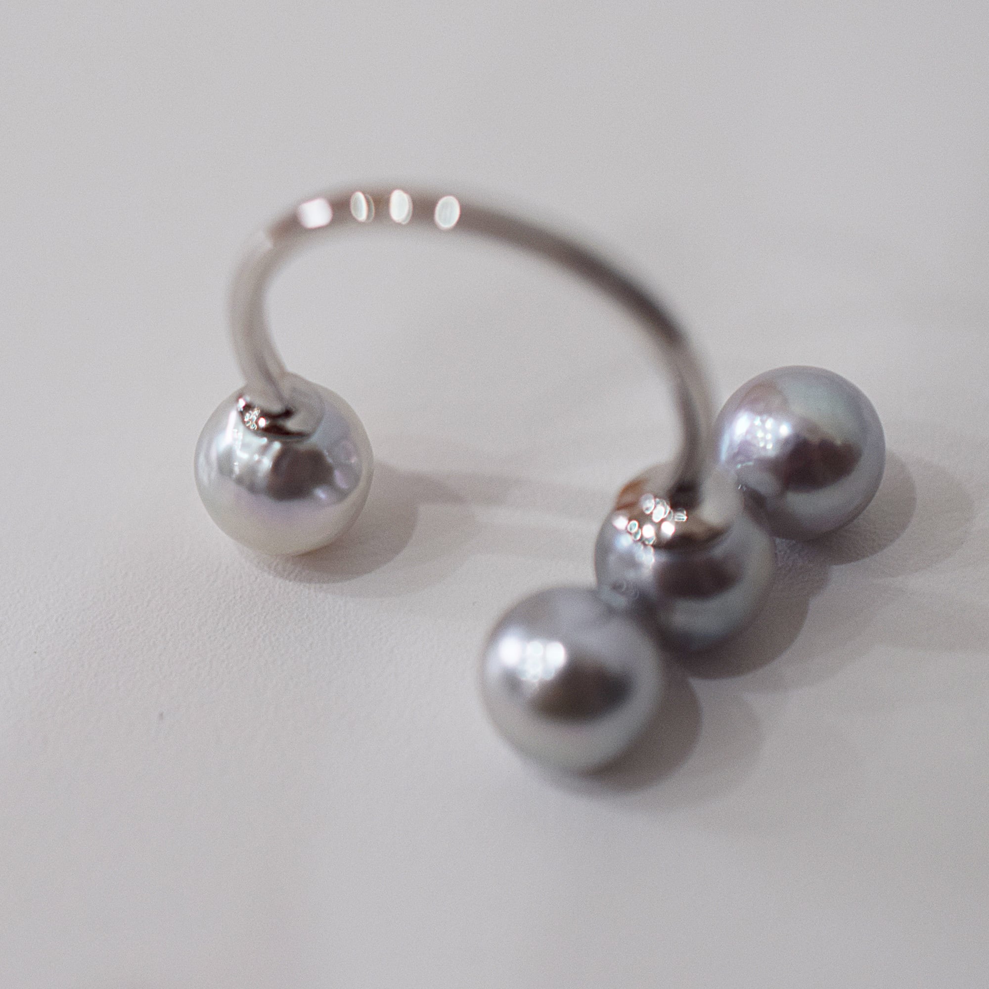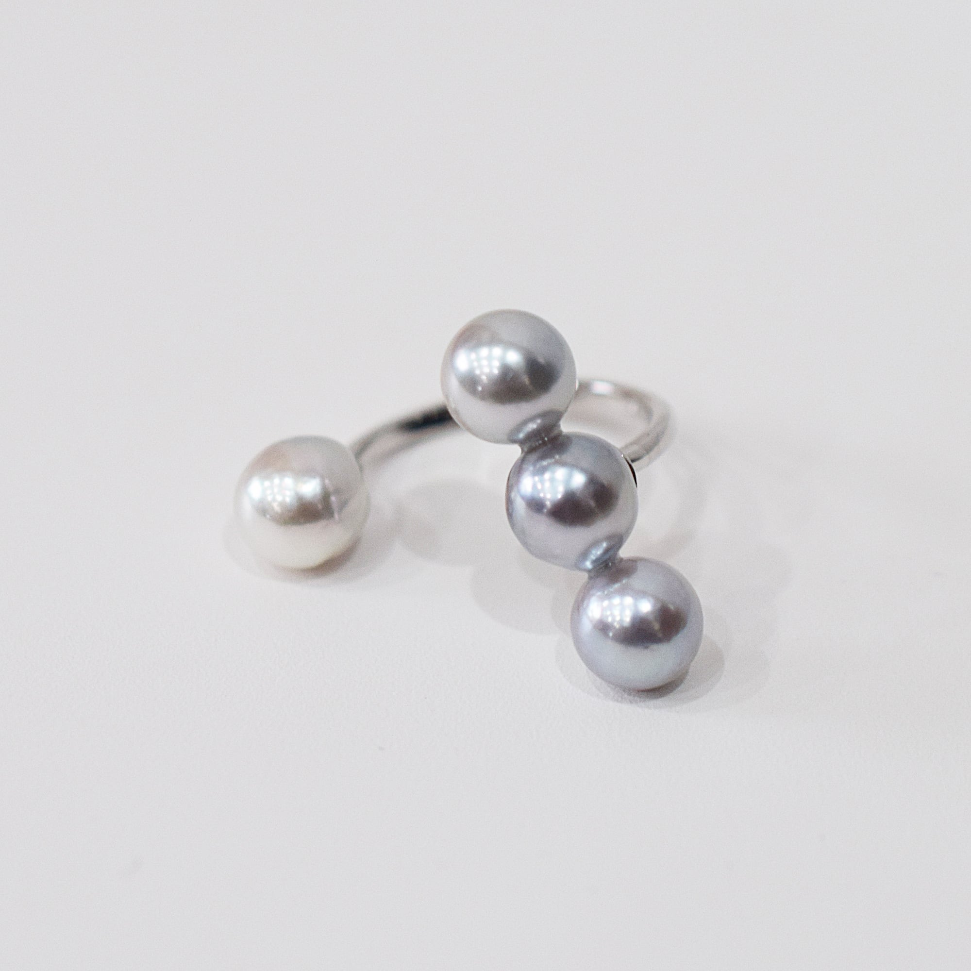 完成品 あこや真珠 7mm - 8mm ナチュラルカラー フリーサイズ フォークリング リング