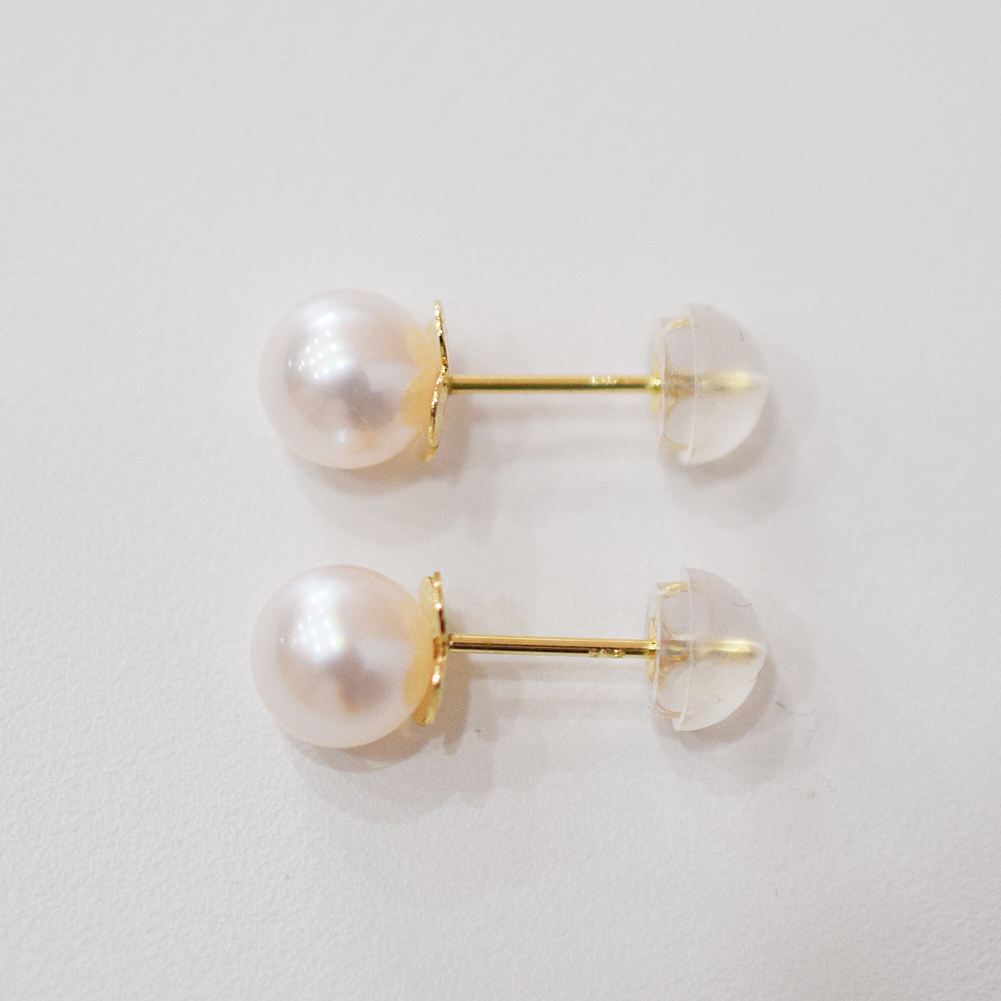 肌馴染みのよいホワイトピンクのあこや真珠が美しいピアスです。