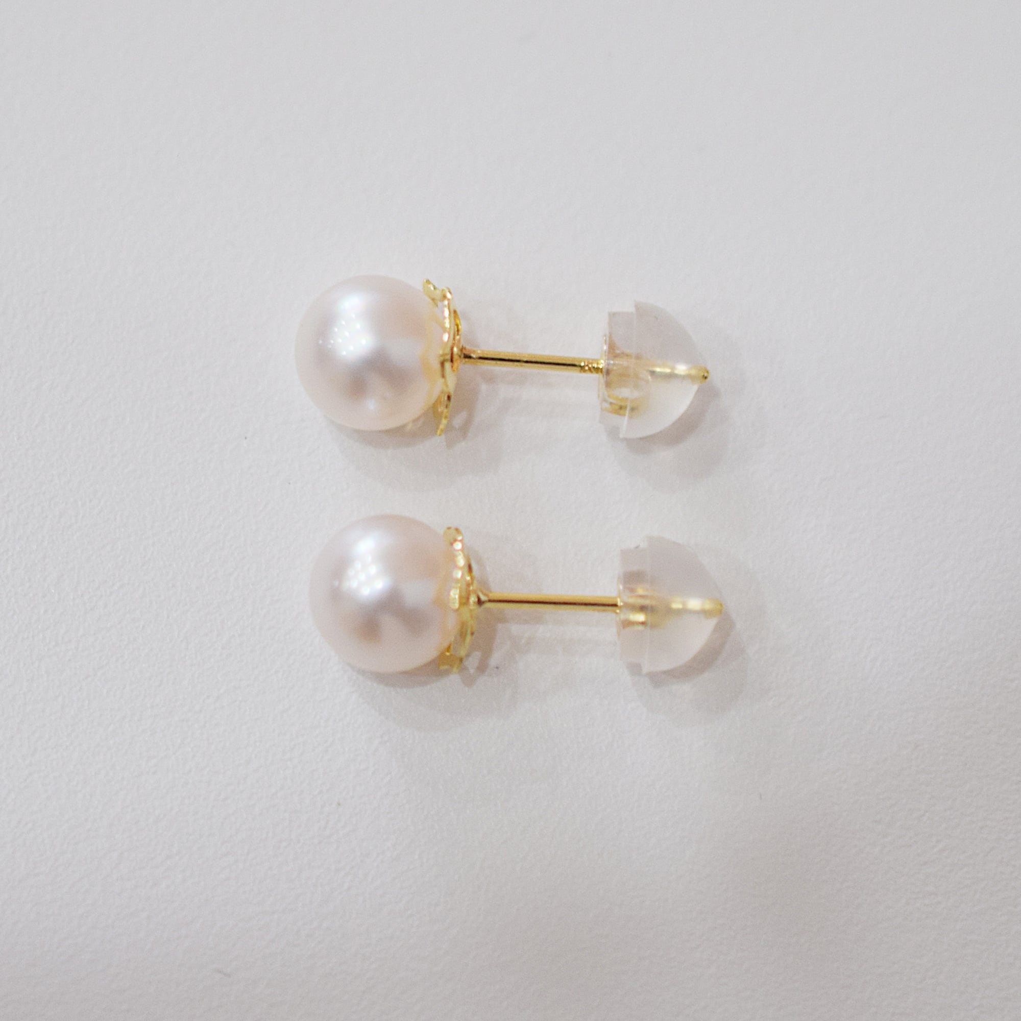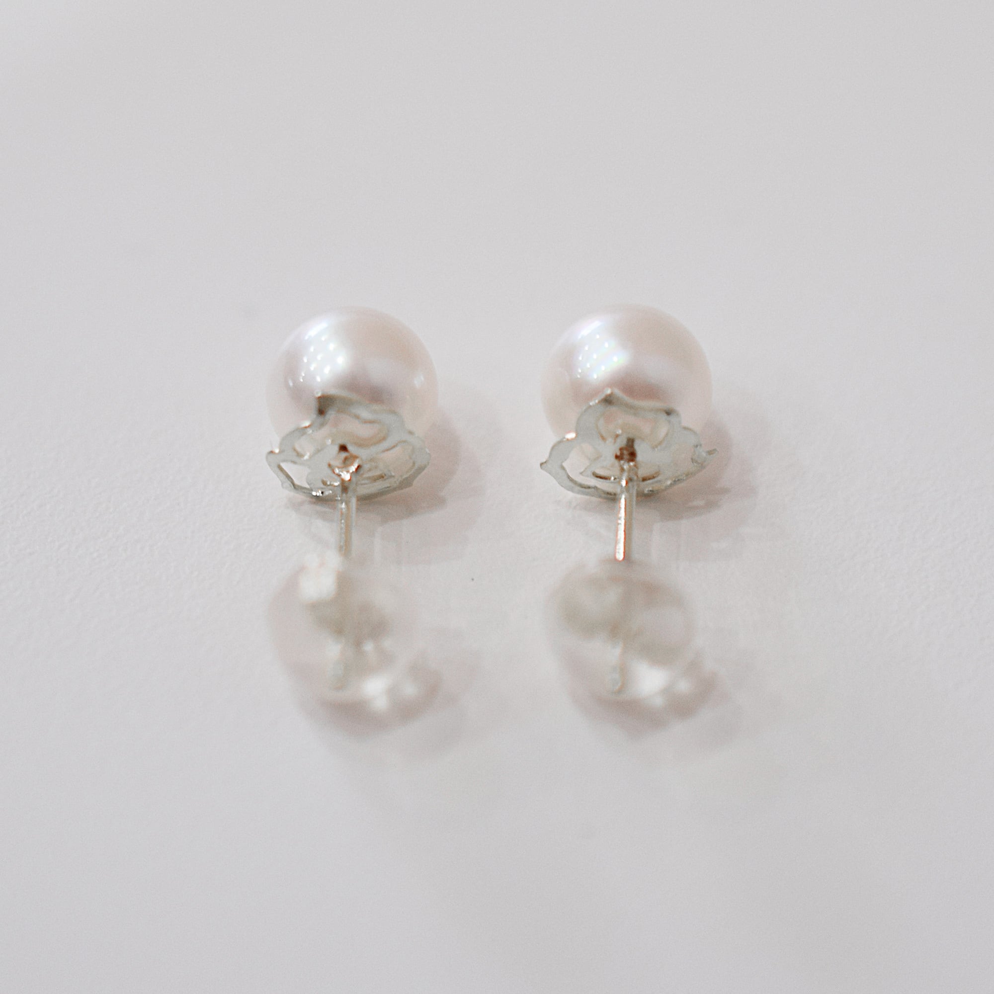 肌馴染みのよいホワイトピンクのあこや真珠が美しいピアスです。