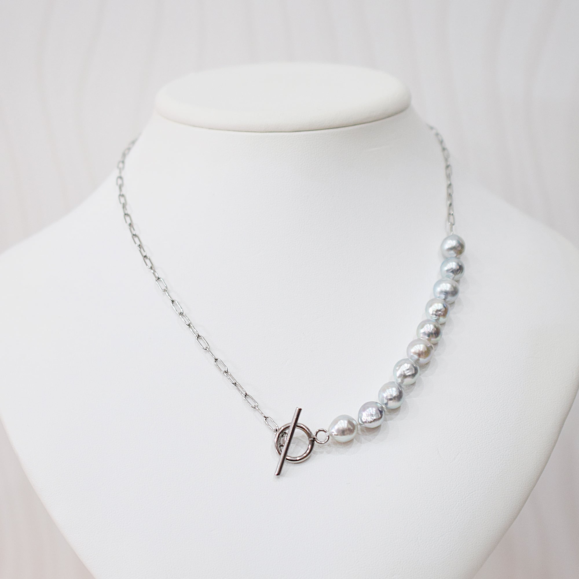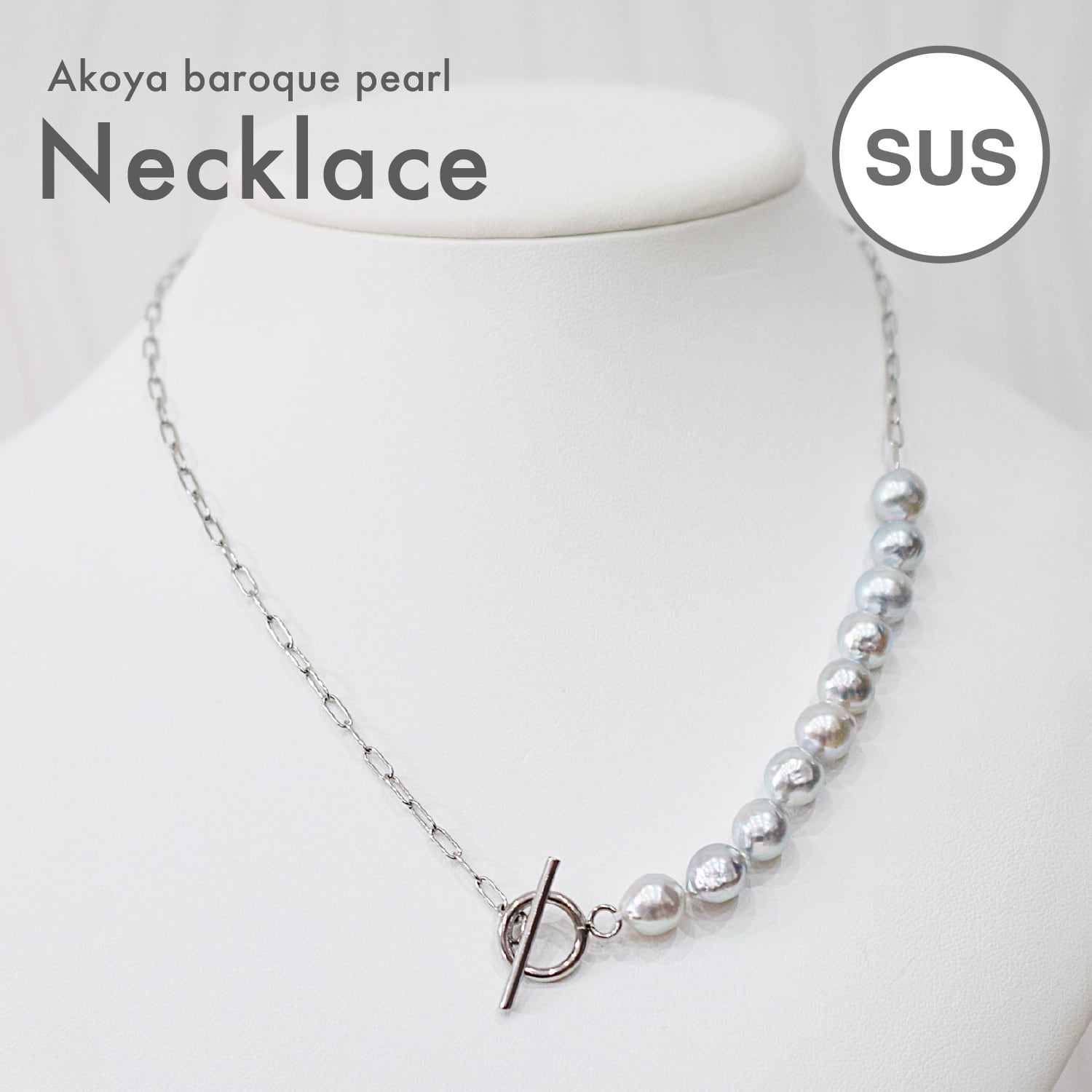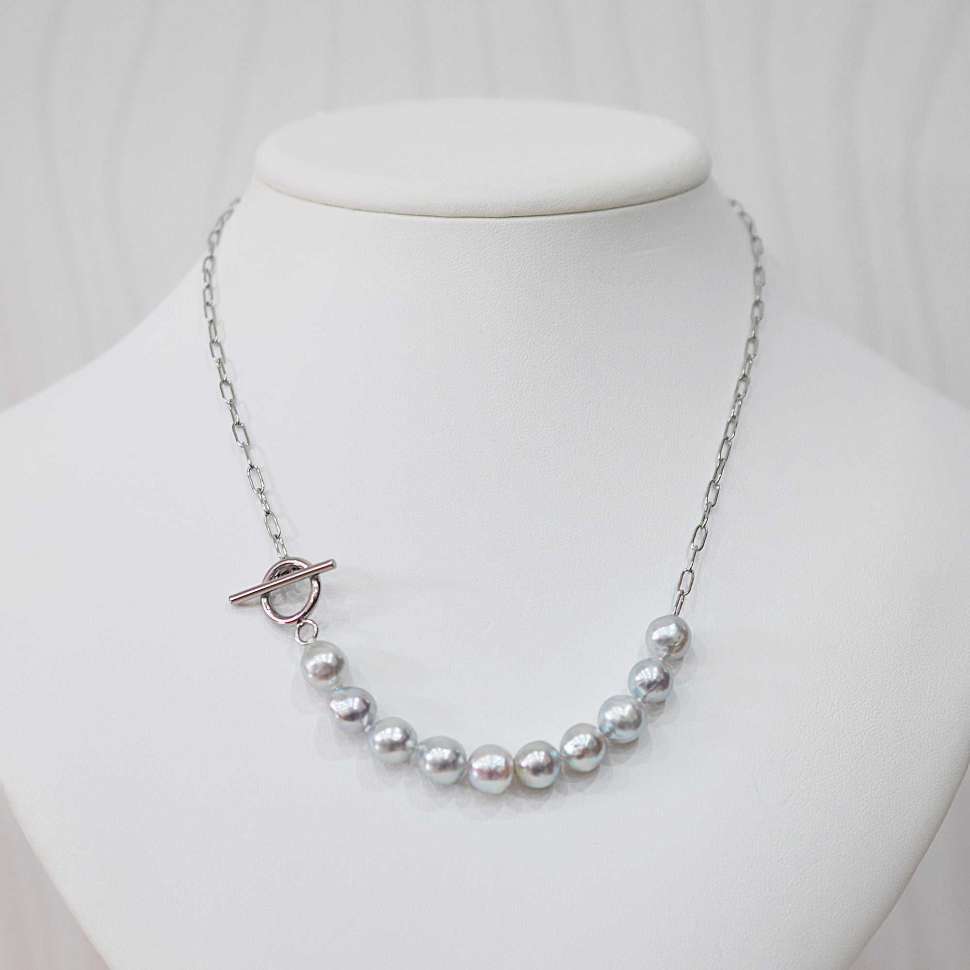 ナチュラルカラーが美しいあこや真珠バロックパールのネックレスです。カジュアルな装いにも合わせやすいデザインです。