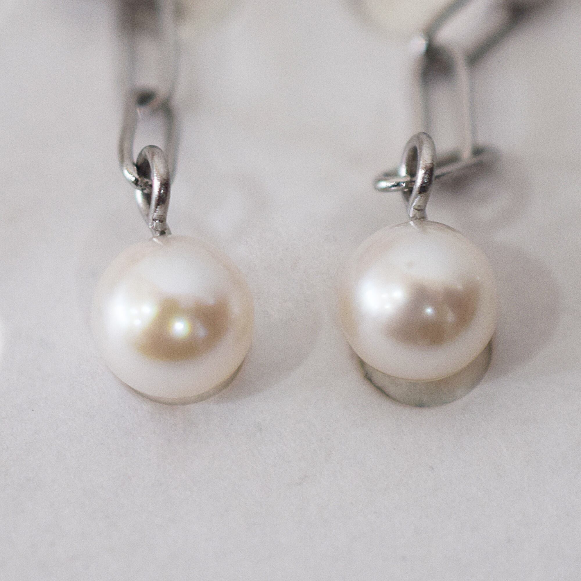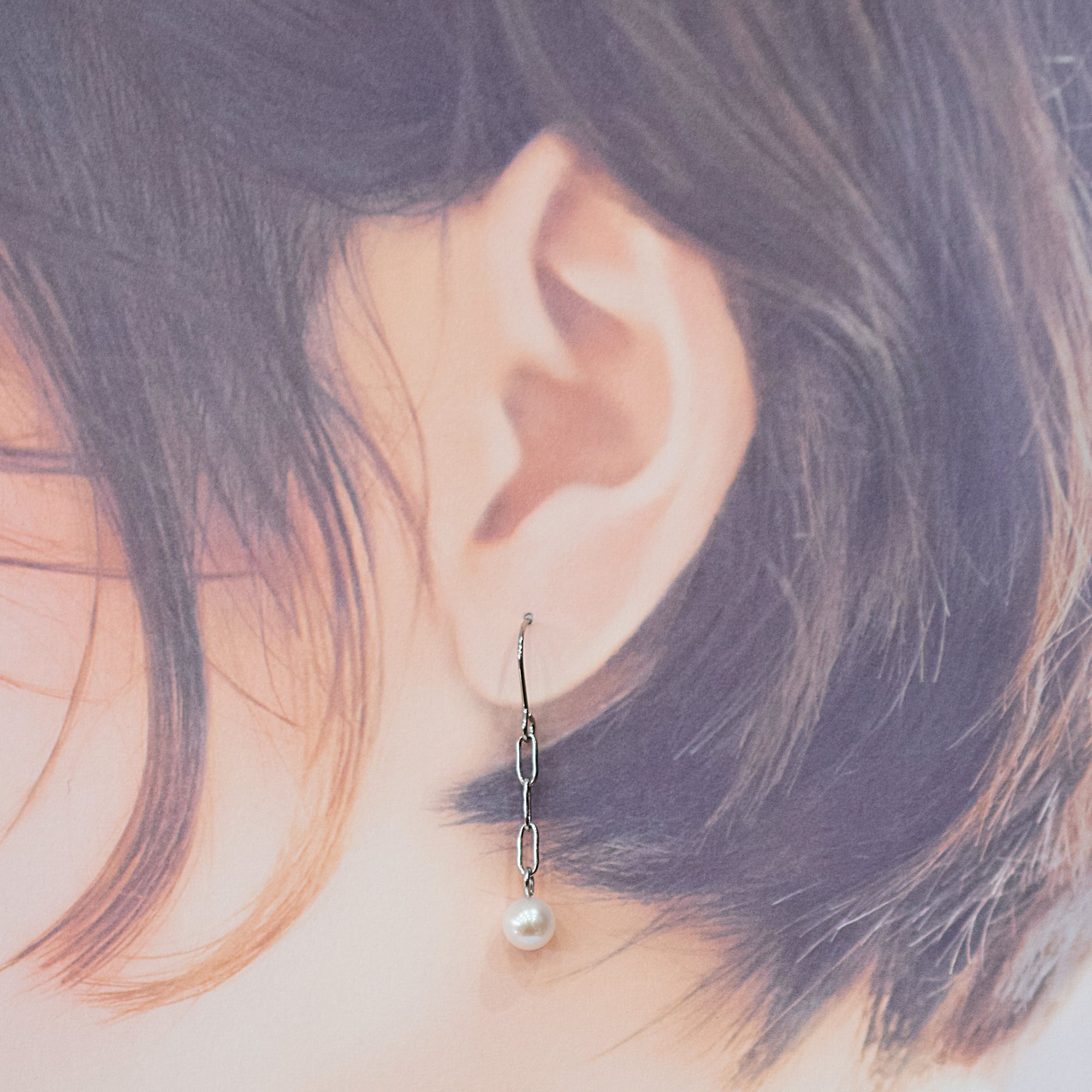 あこや真珠ホワイトピンクのフックピアス。