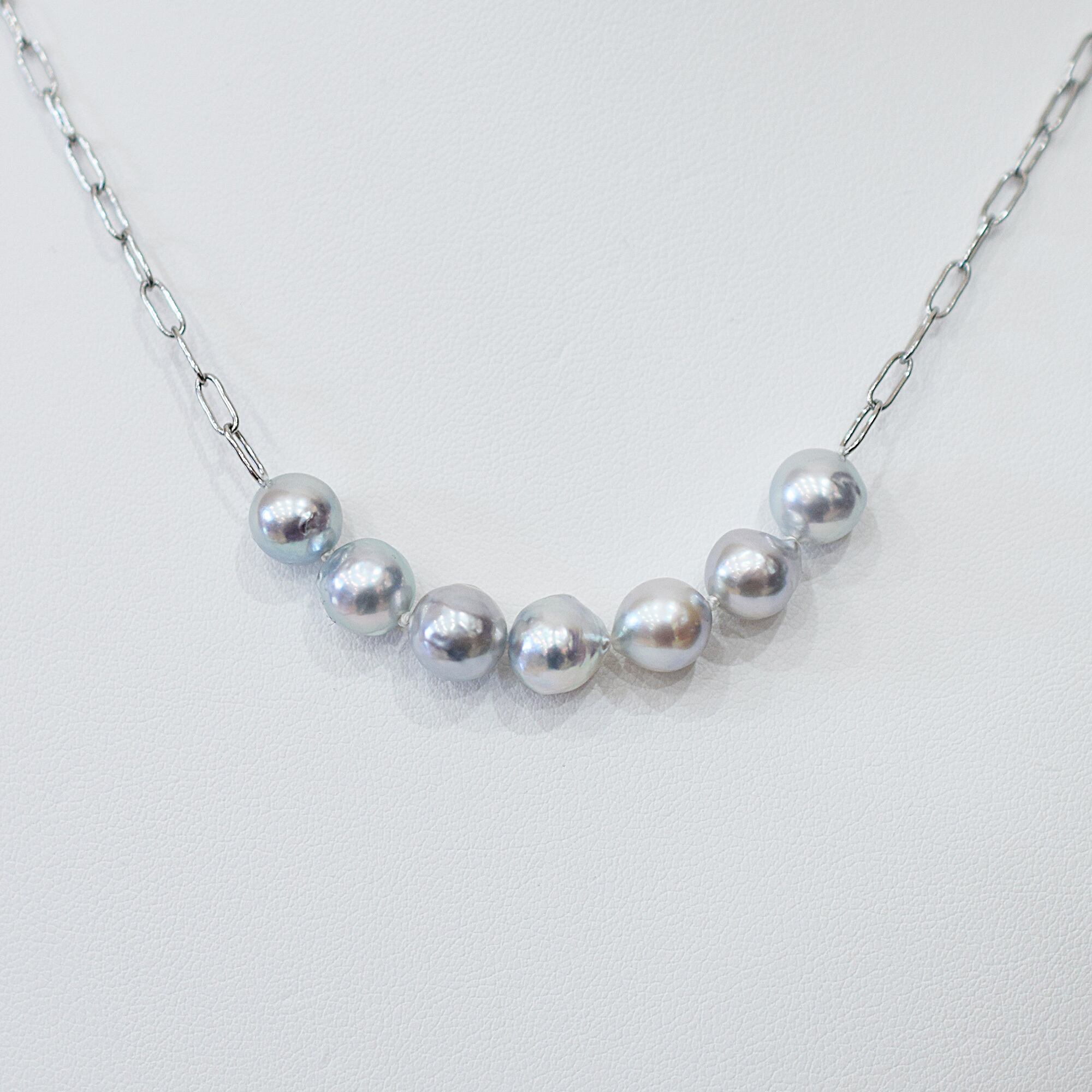 ナチュラルカラーが美しいあこや真珠バロックパールのネックレスです。カジュアルな装いにも合わせやすいデザインです。