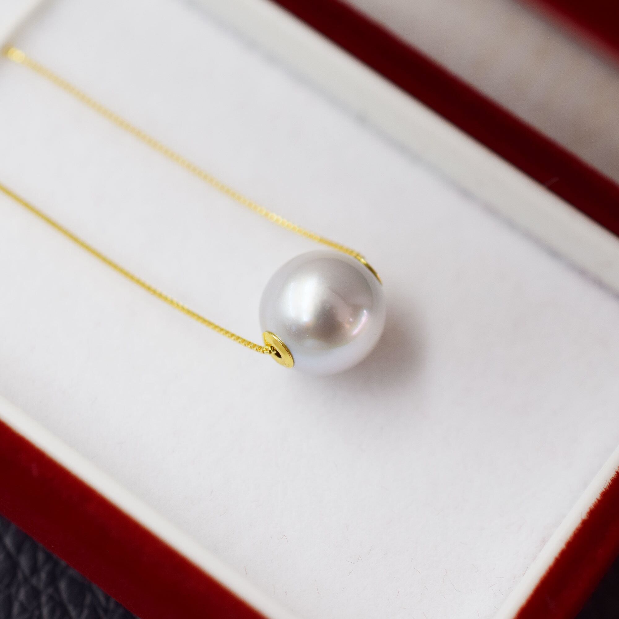 ナチュラルカラーが美しい1粒あこや真珠パールネックレスです。真珠の位置やチェーンを好きな位置に調節できるのも嬉しいネックレス。ちょっとしたお呼ばれやパーティーファッション、カジュアルな装いにも合わせやすいシンプルなデザインがおすすめです。
