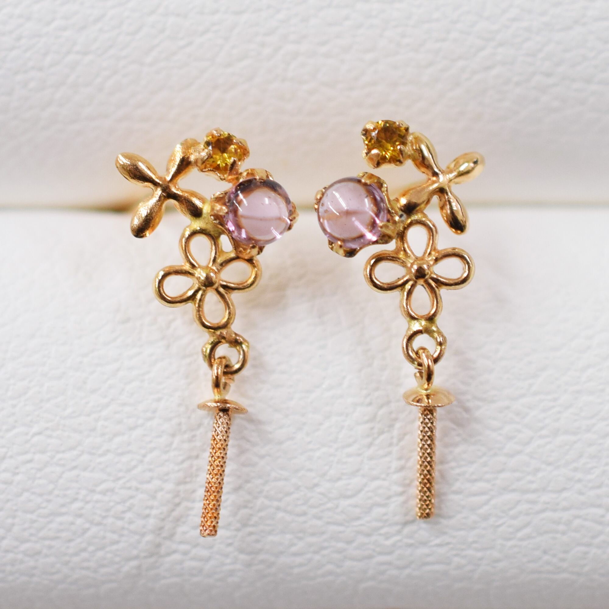 [metal-earring20]金具のみ スタッド ピアス K18 半貴石