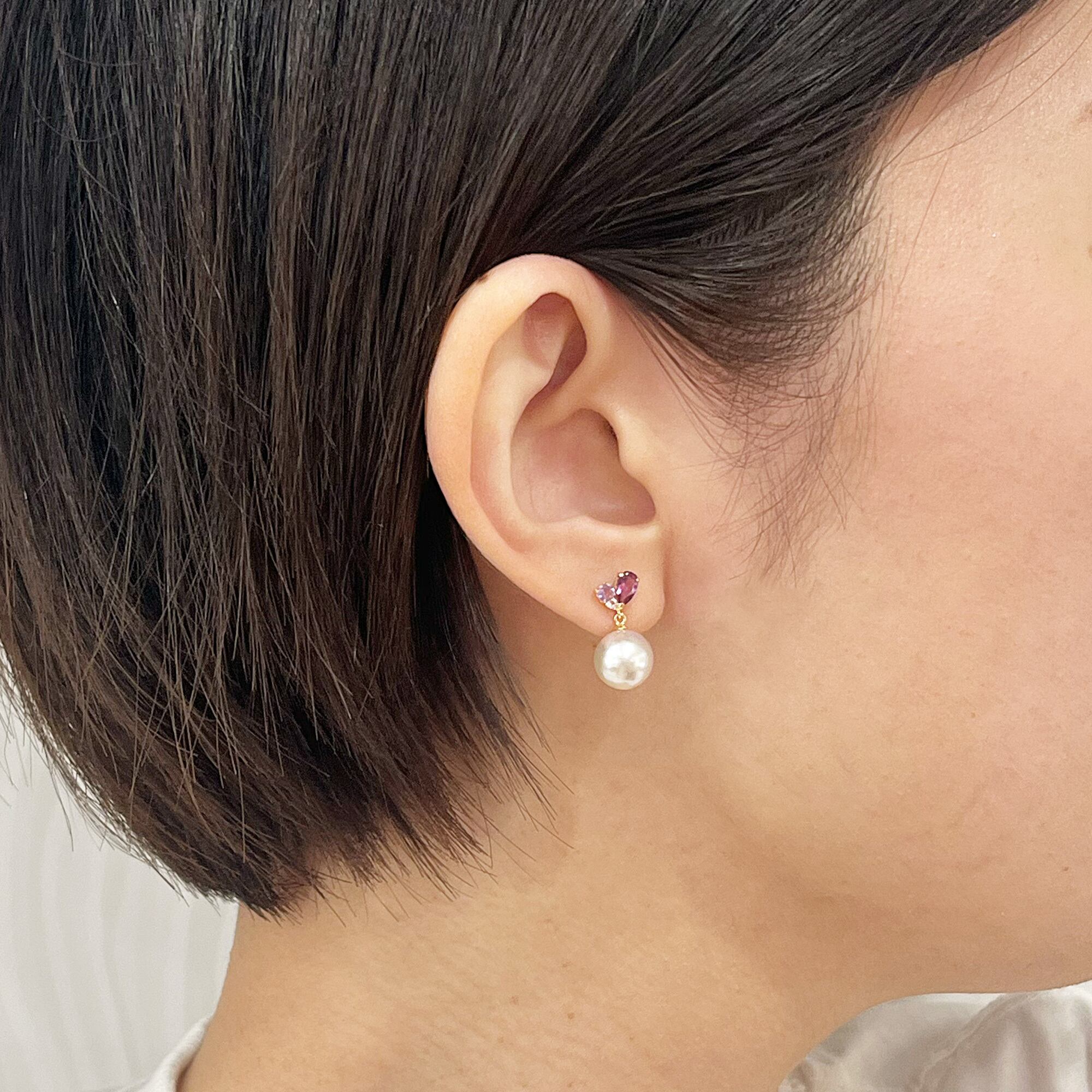 ピアス ピンク 花珠級 あこや真珠 パール あこや パールピアス 普段使い カジュアル シンプル 上品 かわいい 可愛い 大人可愛い 大人カジュアル 大人 8mm - 8.5mm ロードライトガーネット アメジスト ホワイトトパーズ 半貴石 真珠 スタッドピアス 落ちない 揺れる ぶら 18k 18金 金 K18YG K14 K14WG