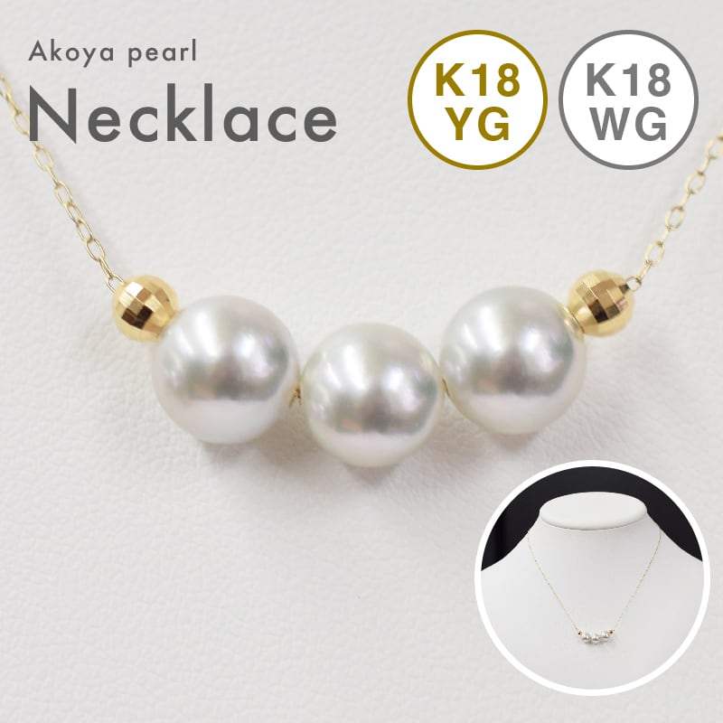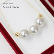 8mm - 8.5mm 3粒 ナチュラル あこや真珠 スルーネックレス ミラーボール