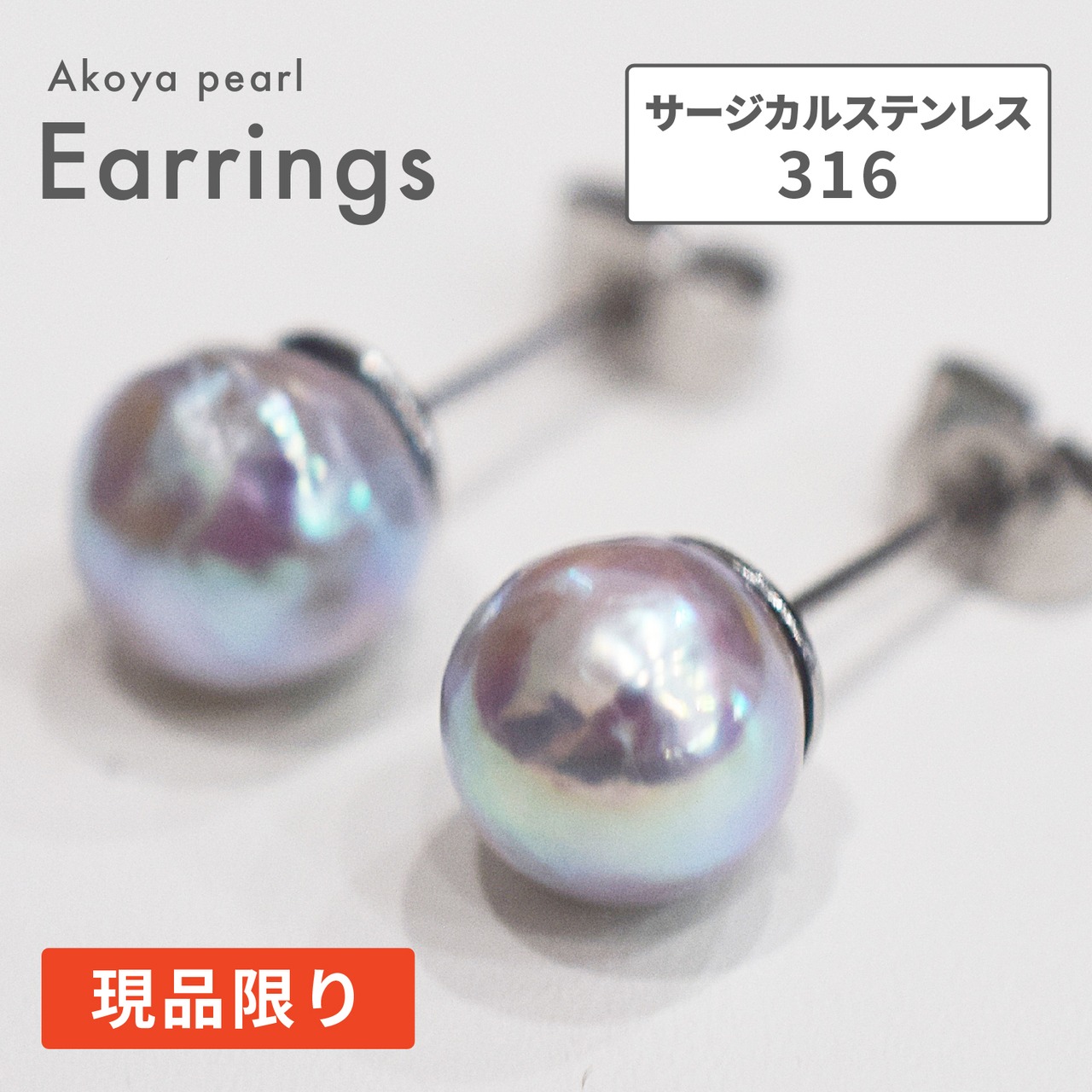 バロック 8mm あこや真珠 スタッドピアス ピアス サージカルステンレス
